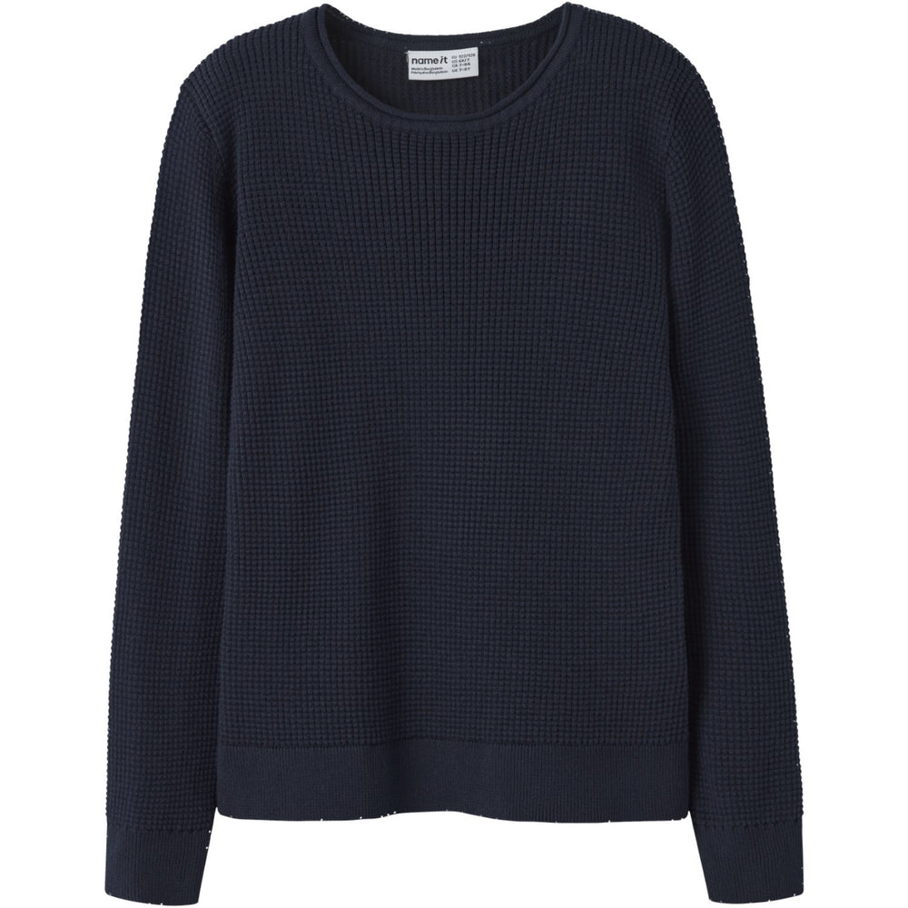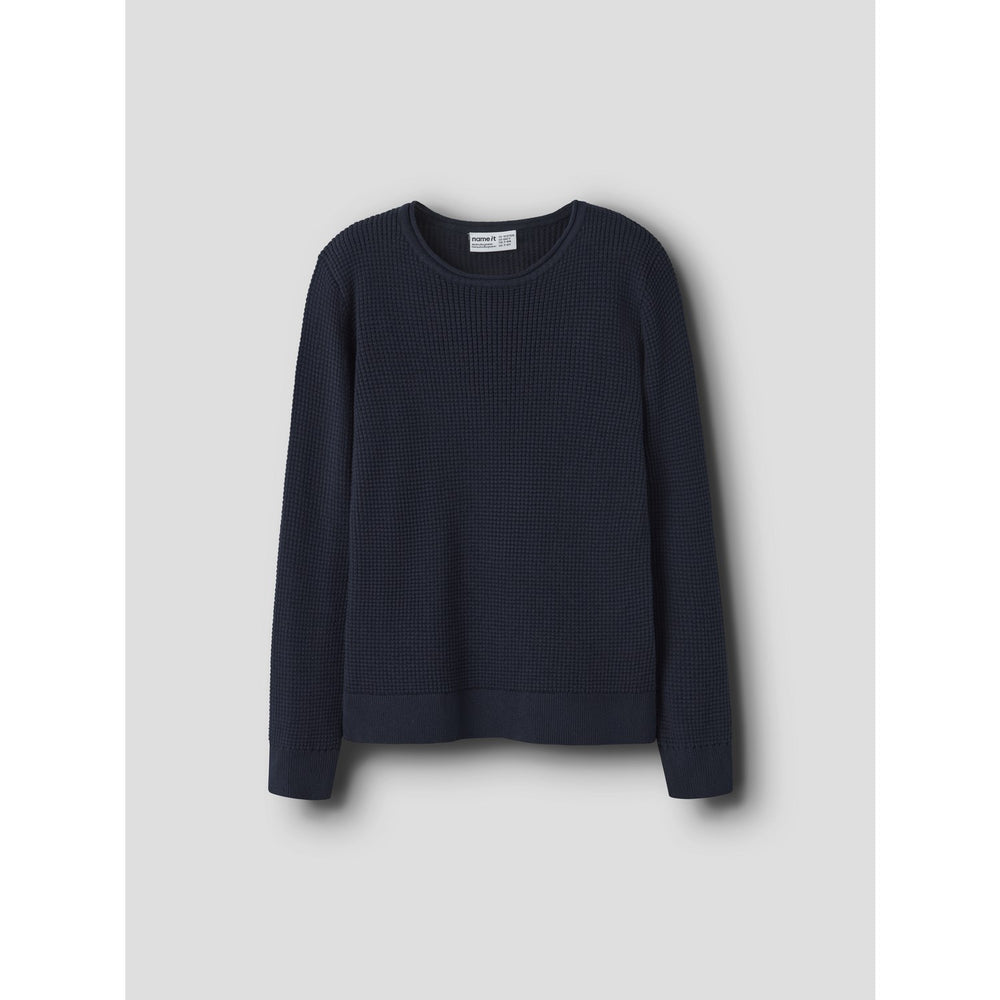 Keep your child cozy and stylish with the Name It Navy Blazer Nkmviklas Ls Knit. This knitted pullover features a comforting soft touch and open design, ensuring warmth and ease. Crafted with long sleeves and a classic round neck, it offers a regular fit perfect for active kids. In a versatile navy hue, it's easy to care for and matches effortlessly with various outfits. Ideal for cooler weather, it promises both comfort and style in every wear.