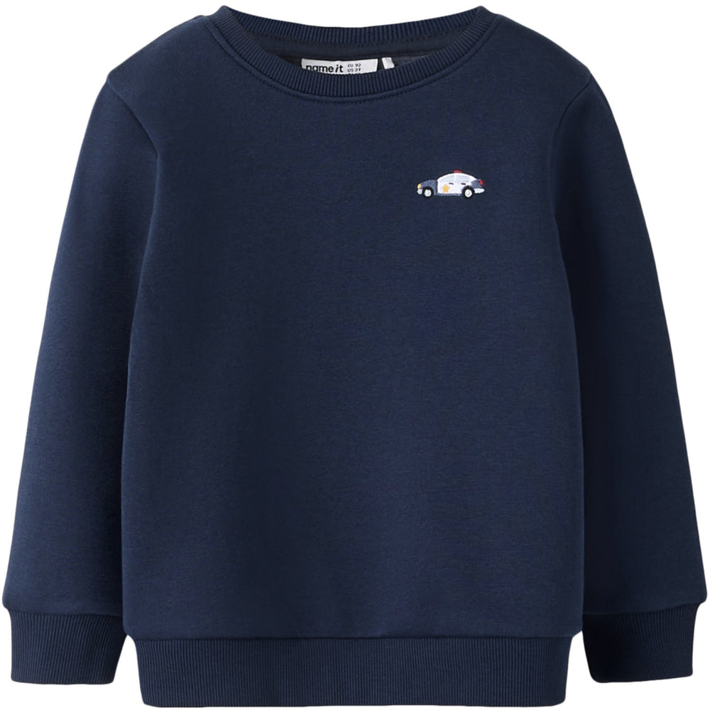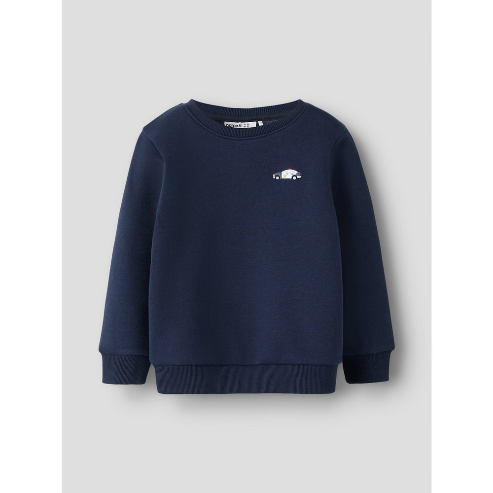 Wrap your little one in the cozy embrace of the Name It Navy Blazer Nmmopa Ls Swe Bru sweatshirt. Crafted from brushed sweat fabric with a soft interior, it ensures comfort all day long. This sweatshirt features a stylish round neck, long sleeves, and a neat rib hem, complemented by a soft pigment print. Its regular fit allows effortless movement and easy layering. Ideal for both playful days and relaxed evenings, this piece combines durability with a trendy look, making it a perfect addition to any child's wardrobe.