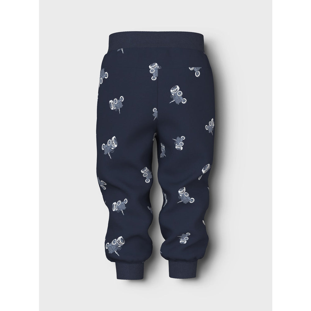 Introduce your little one to the cozy embrace of our Name It Navy Blazer Tractors Nmmvifelix Nreg Swe Pants Unb. Designed with unbrushed sweat fabric, these sweatpants prioritize comfort with a smooth exterior and soft loops inside. Featuring a charming tractor print spread evenly across the fabric, they come in a regular fit and include a fixed cotton cord for easy adjustability. These navy blazer-colored pants are perfect for both daily activities and relaxed weekends, offering a combination of style, comfort, and practicality. Easy to care for, they ensure your child remains comfortable and stylish in any setting.