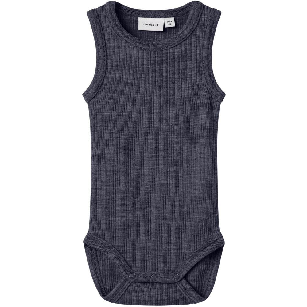 Discover the charming Name It Ombre Blue Nbnwax Wool Rib Tank Body, a staple addition that brings both style and comfort to your little one's ensemble. Crafted from natural wool, this bodysuit is celebrated for its exceptional thermal qualities, ensuring your child stays warm in the chill and cool when it's warm. Its unique ombre blue hue and ribbed texture add a touch of style, while the round neck and sleeveless design enhance wearability and comfort. Practically designed with a press stud fastening in the crotch for easy dressing, this piece balances elegance and functionality beautifully. Ideal for any season, its wool composition promotes breathability and maintains effective insulation even when wet. Elevate your child's wardrobe with this versatile and cozy bodysuit, perfect for a variety of occasions.