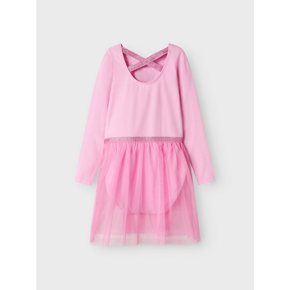 Brighten up your little one's playtime with the enchanting Name It Pastel Lavender Justine Gabby Gymsuit. Crafted from soft, stretchy jersey, this gymsuit ensures comfort and freedom of movement, making it perfect for active toddlers. Featuring a whimsical rubber print inspired by the beloved series, Gabby's Dollhouse, this piece combines fun and functionality with its durable long sleeves and supportive cross-back straps adorned with a subtle glitter detail.