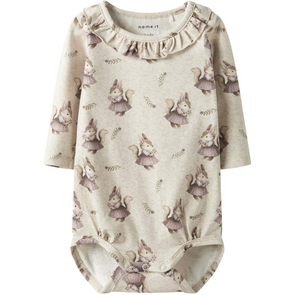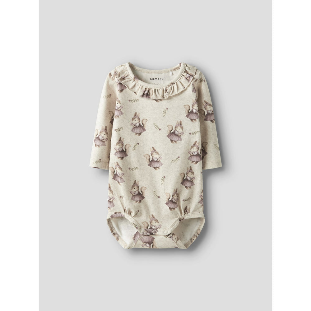 Discover the charm and comfort of the Name It Peyote Melange Nbfshelly Ls Body, a must-have for your little one's collection. This delightful bodysuit features a playful all-over print and adorable frill details, crafted from soft, stretchy jersey to ensure maximum comfort and freedom of movement. Designed with a practical round neck and convenient press stud fastening for easy dressing, its long sleeves make it ideal for any season. Please note, keep this garment away from fire. Perfect for daily wear, this bodysuit combines functionality with cute style! Closure: Press Stud Materials: 95% Cotton - Organic, 5% Elastane Extra: The main material in this product contains a minimum of 50% organic cotton. Organic cotton is grown without the use of harmful chemicals. Organic cotton farming protects natural resources and biodiversity.