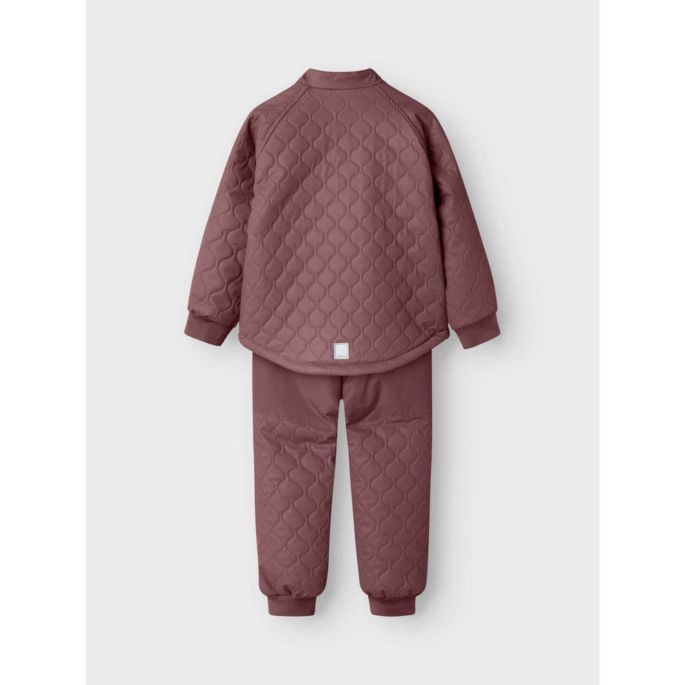 Dress your little explorer in the NAME IT Rose Brown Nmfmud Rub Quilt Set, expertly crafted since 1986 to ensure your child stays warm and dry during outdoor adventures. This thermowear set features a spread collar, long sleeves with ribbed cuffs, and cozy fleece lining, all designed in a stylish, solid rose brown color. The quilted jacket and pants come with functional side pockets, rib hems, and are enhanced with decorative reflective details for safety. The set is thoughtfully finished with an eco water-repellent treatment, ensuring no harmful fluorine substances are used. Perfect for playing or exploring in any weather, this outfit offers comfort, functionality, and the latest in children’s fashion trends.