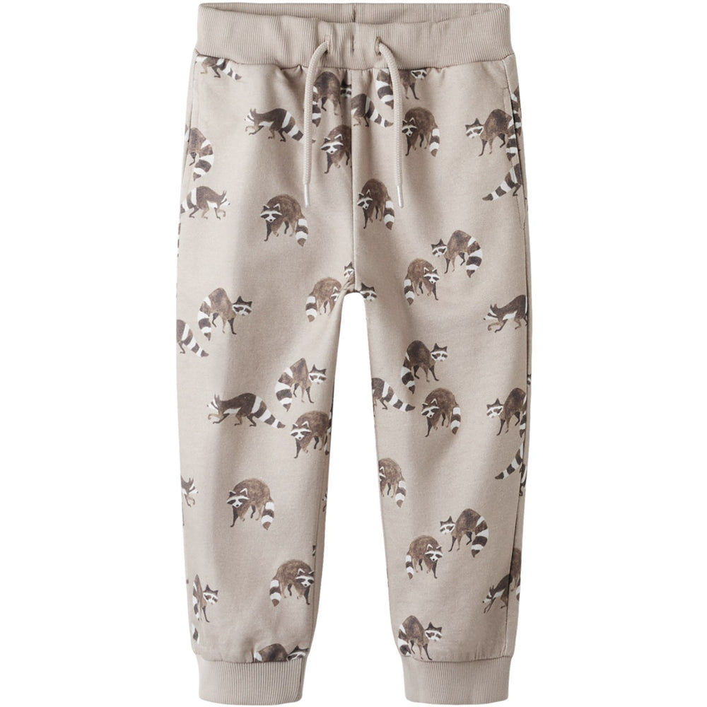 Discover the Name It Simply Taupe Nmmkeonel Swe Pants, perfect for stylish and active kids. Made from unbrushed sweat fabric, these trousers offer a soft touch outside with a cozy looped interior. Featuring side pockets, ribbed hems and waist for enhanced fit and comfort, plus a charming all-over print. Crafted from soothing cotton, these regular fit pants allow freedom of movement and are easy to care for, making them ideal for everyday adventures.