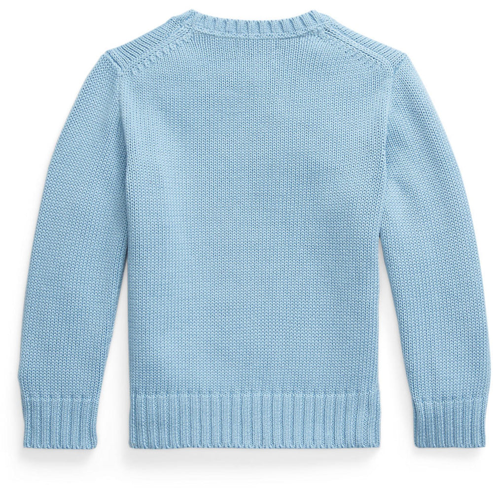 Discover the charm of the Polo Ralph Lauren Chambray Blue Sweater, meticulously crafted from a soft, knitted material. This sweater features a captivating blue hue and a timeless design, ideal for versatile styling. Sized for comfort, it promises a snug fit and easy wearability. Perfect for cooler days, this piece combines elegance with everyday practicality, ensuring it becomes a cherished item in your child's wardrobe. Care is a breeze, as the durable fabric holds up beautifully with regular washing.