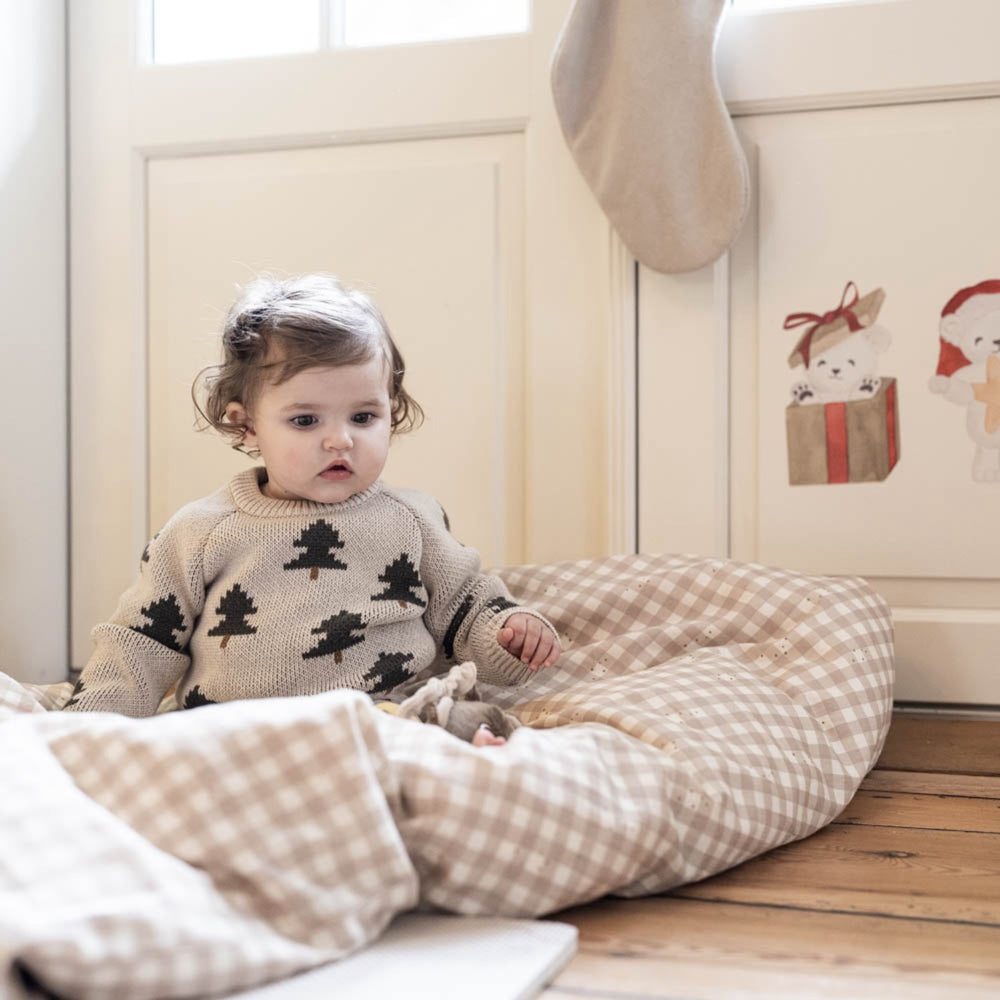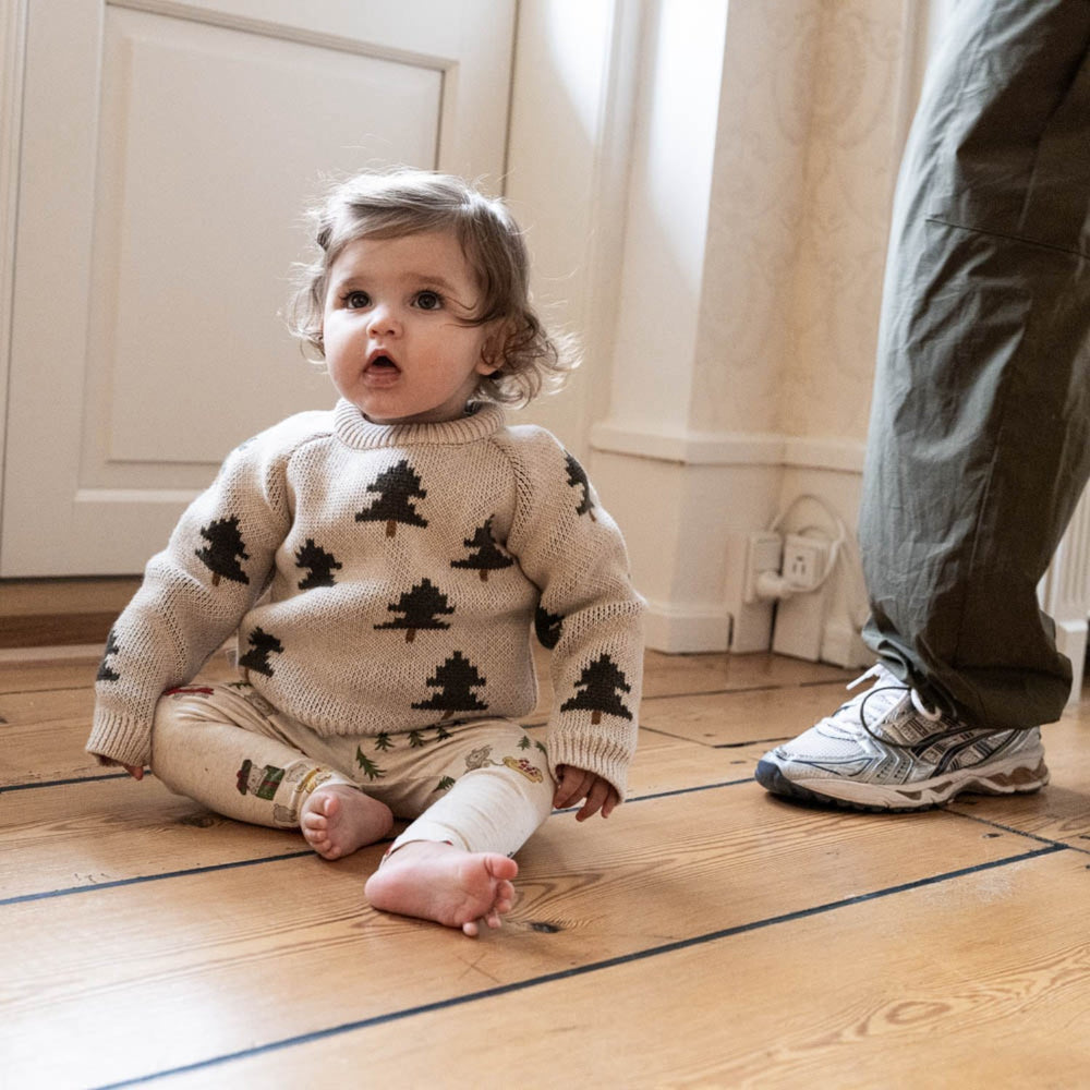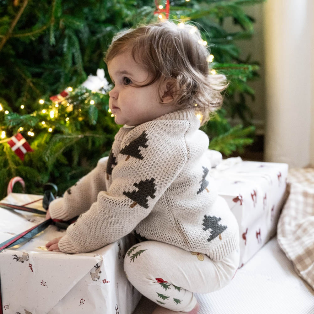Discover the charm of the holiday season with our That's Mine Oatmeal Melange Fabian Knit Sweater. Perfectly knitted from organic cotton, this sweater features delightful Christmas tree motifs, offering both style and comfort. Its oatmeal melange color complements any child's winter wardrobe, while the soft texture ensures wearability and ease of care. Ideal for festive gatherings or cozy winter days, this sweater seamlessly blends functionality with a joyful design.
