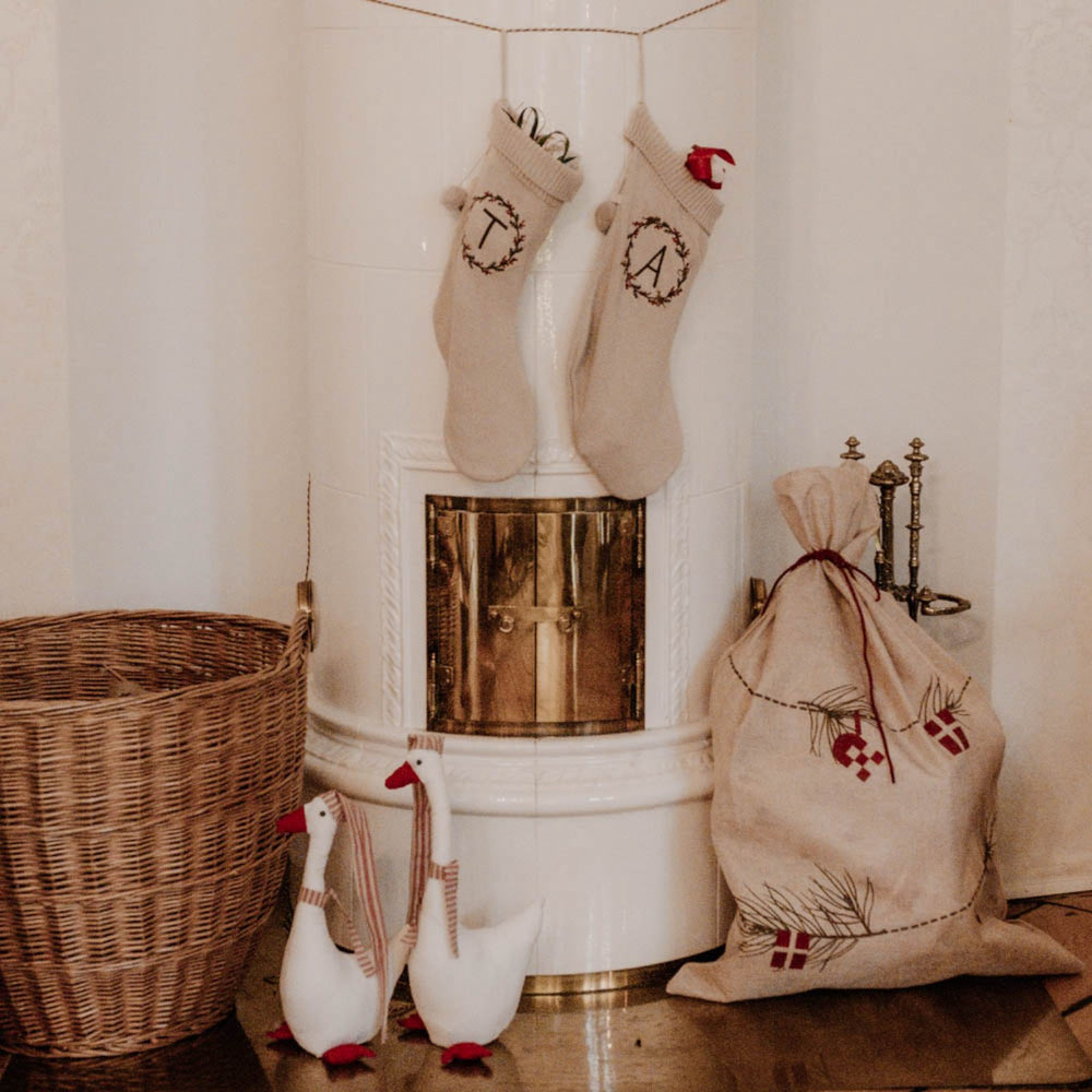 Bring festive cheer into your child's room with the enchanting That's Mine Peyote Calle Christmas Sock. Perfect for amplifying the holiday spirit, this charming Christmas sock beautifully adorned with an embroidered wreath complements your seasonal decor. Crafted from 100% organic cotton, it offers a safe and snug haven for gifts. Add a personal touch by including your child's initial, making each discovery of a tucked-away present a heartwarming moment of joy. Certifications: GOTS, Oekotex
