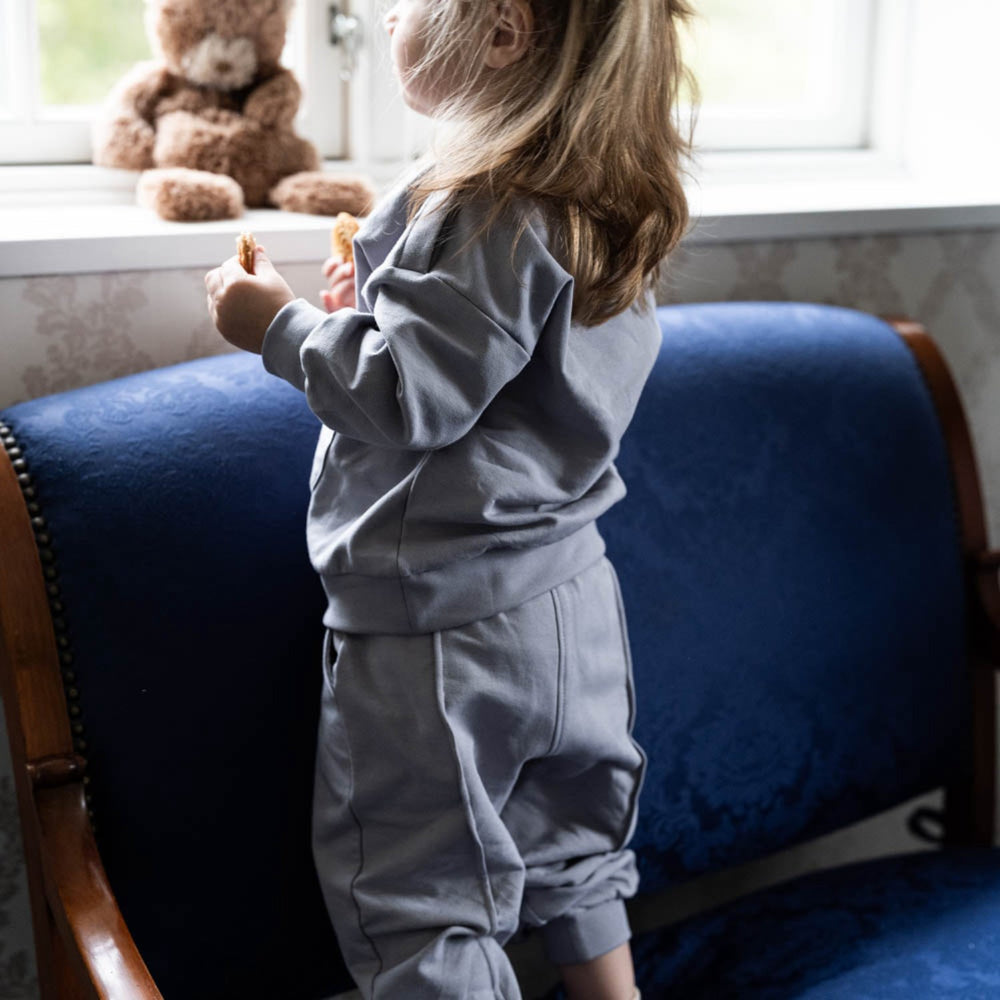 Discover the cozy charm of That's Mine Weathervane Shiva Sweatpants, featuring soft fabric and decorative stitching down each leg. These pants sport an adjustable waist for optimal fit and a snug ribbed hem. Perfectly matched with the Sava Sweatshirt, they ensure style and comfort for your little one. Ideal for both playful days and relaxing moments. Materials: 95% Organic cotton / 5% Elastane