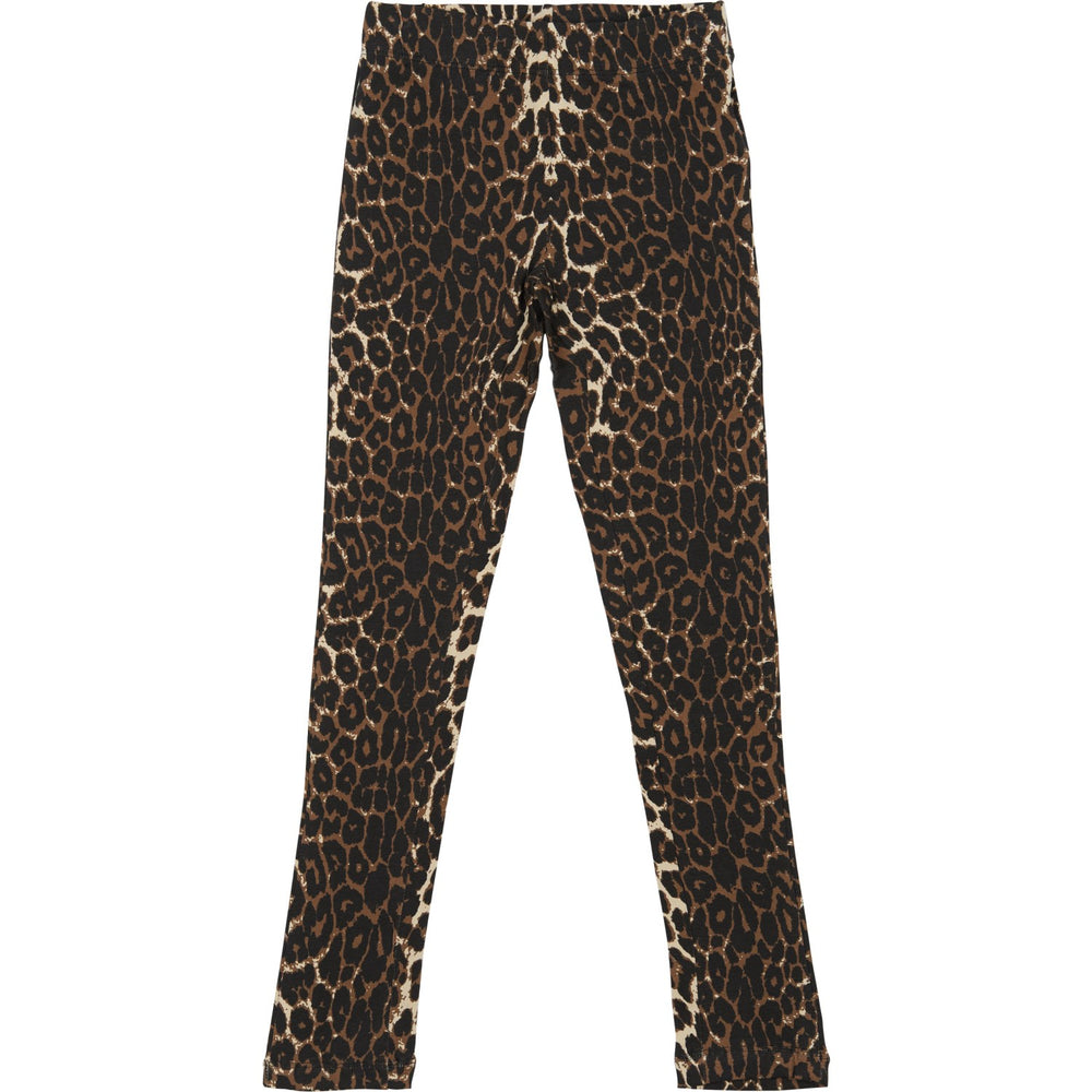 Introducing the delightfully soft New Feather Gray AOP TNParnell Leggings from THE NEW, designed to blend style and comfort perfectly for your little one. Crafted from GOTS Organic certified, stretchy material, these leggings feature an eye-catching leopard print that adds flair to any child's wardrobe. Not only are they chic, but they also offer ultimate comfort with their elastic waistband and snug cuffs, ensuring they stay in place whether your child is at play or at rest. These regular-fit leggings are versatile enough for various outfits, pairing effortlessly with both simple t-shirts and fancy blouses. Invest in these leggings for endless style and comfort that keep up with your child’s active life.