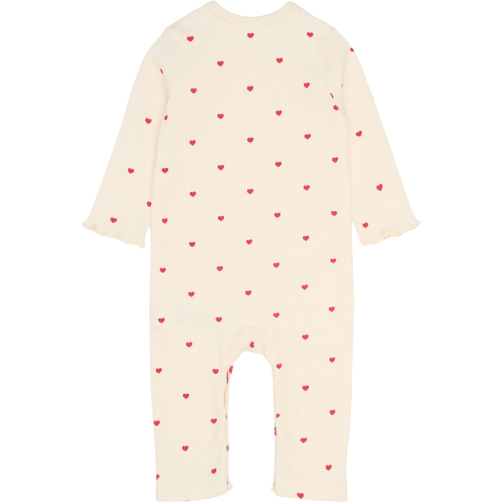 Brighten up your little one's wardrobe with the THE NEW Siblings Gardenia AOP Holiday L_S Heart Rib Jumpsuit. This slim-fit romper charms with its adorable heart pattern and slashes of vibrant hues, making it a delightful choice for both playdates and family gatherings. Engineered with soft, GOTS Organic certified fabric, it ensures comfort for all-day wear. The practical design features snap buttons at the shoulder and along the legs for easy dressing. Long sleeves and legs provide extra warmth and protection, perfect for any season. Radiate joy and style with this essential piece that combines both fun and functionality in a kid-friendly fashion.