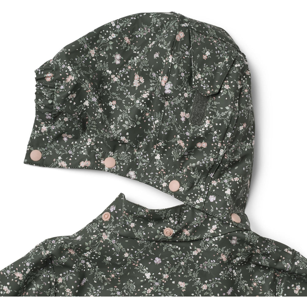 The Wheat Forest Lake Checked Flowers Rainwear Ollo Jacket is not only easy to clean with a simple wipe down but also maintains its integrity and function thanks to its fluorine-free finish and waterproofing up to 8,000 mm. Fully GRS certified, this jacket is an excellent choice for parents seeking both style and ethical manufacturing.
