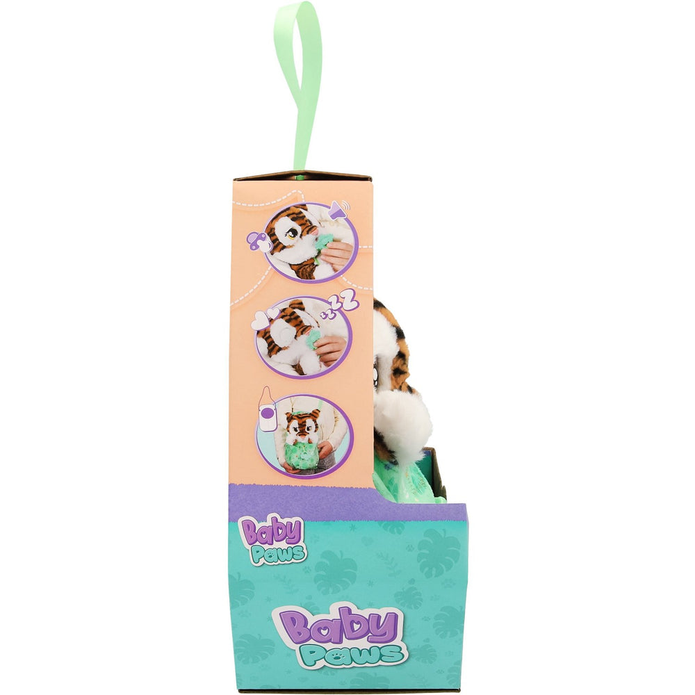 Meet the newest addition to the Baby Paws family, the 24 cm Electronic Tiger, perfect for children who love interactive play. This adorable tiger comes with cozy accessories including a wrap and a pacifier, enhancing its bedtime routine with sweet sleeping sounds when the pacifier is used. Designed for easy cuddling and care, your child can either snuggle with the tiger wrapped up or play with it unwrapped. Light and portable, this tiger is ideal for little ones to carry along on all their adventures, promising endless hugs, kisses, and educational engagement. An excellent interactive companion, this toy ensures safe and joyful learning through nurturing play, suitable for kids who adore both fun and tenderness.