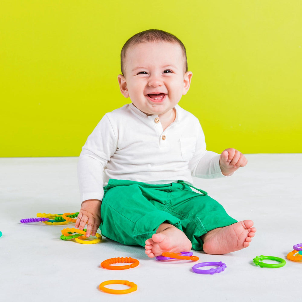 Discover the joy and versatility of Bright Starts Lots of Links, a pack of 24 colorful and bendy links perfect for little hands to manipulate and explore. Loved by parents and babies alike, these BPA-free plastic links are not only safe but also incredibly engaging. Designed to promote development, these links encourage motor skills and sensory experiences as babies twist, squeeze, and bend them.