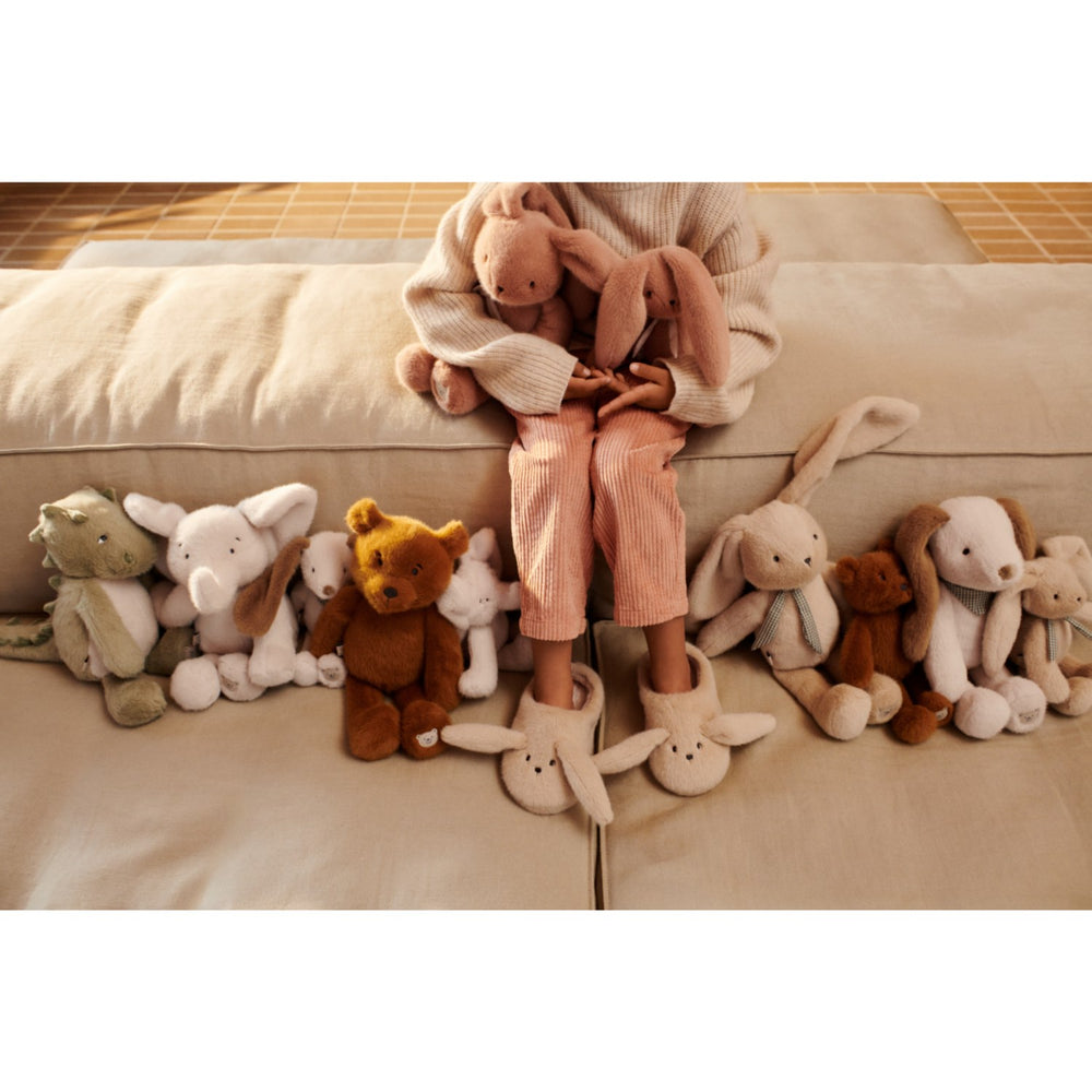 Discover the charm of our LieWood Mist Binnie Rabbit Small Teddy, meticulously crafted from ultra-soft, plush quality recycled polyester. This adorable 16 cm tall rabbit in a sitting position is not only perfect for little hands but also an eco-friendly choice for the environment. Its small size makes it highly portable and easy to store, while the high-quality material ensures durability and ease of maintenance. Ideal for children of all ages, this teddy encourages interactive play and serves as a delightful lifelong cuddly companion. A perfect gift on its own or paired with a larger teddy to complete the charming family set. Materials: Shell: 100% Recycled polyester, Filling: 100% Recycled Polyester Certifications: GOTS certified: CU1155405GOTSGRS certified: CU1155405GRS, CE marked, CA marked