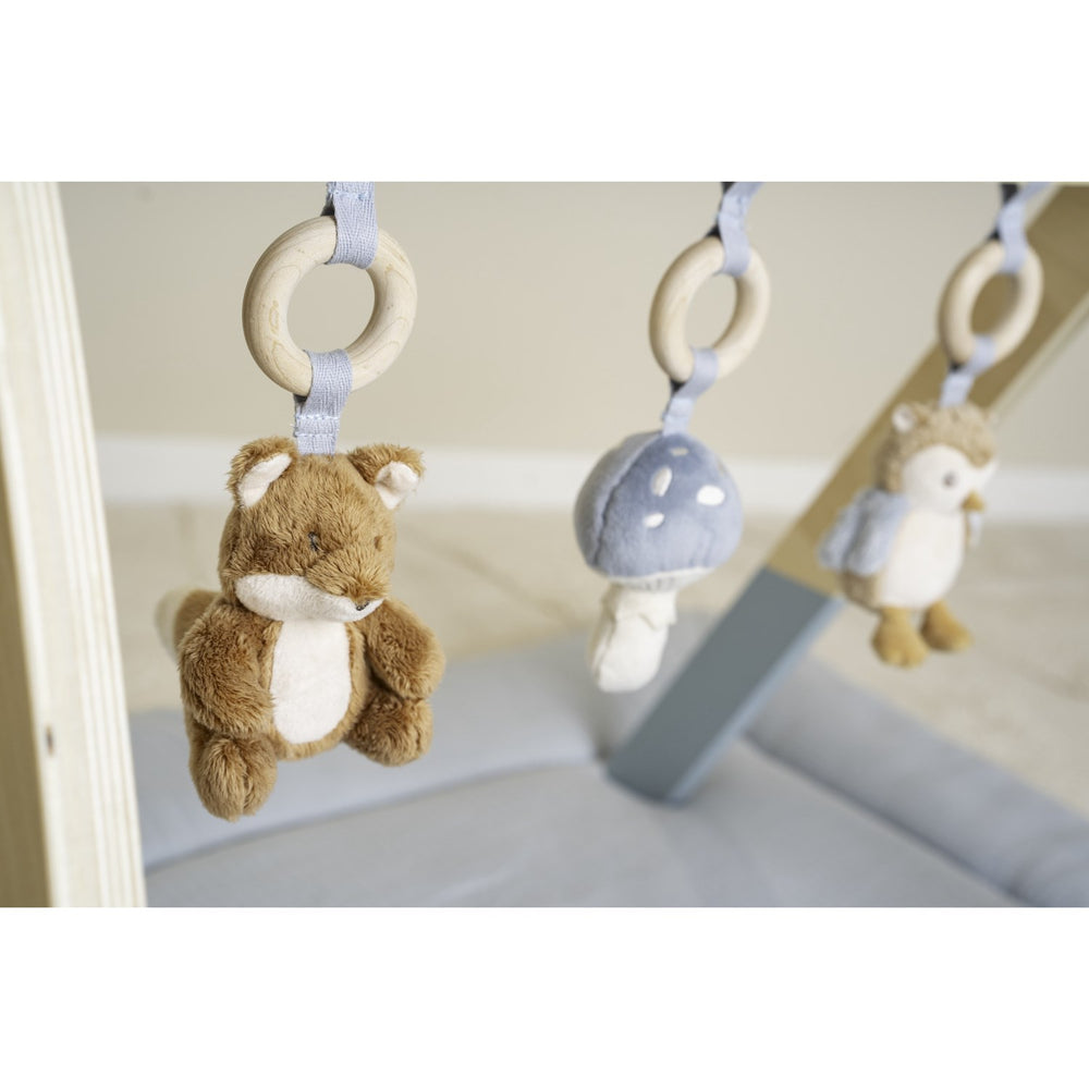 Discover the enchanting world of the Little Dutch Forest Friends Blue Baby Gym, a perfect playground for your curious infant. Designed with safety and stimulation in mind, this charming baby gym is crafted from robust wood, ensuring long-lasting durability. It features three delightful activity toys—a friendly fox, a wise owl, and a whimsical mushroom—that dangle invitingly, encouraging your baby to stretch and reach. This interaction not only captivates and engages but also enhances hand-eye coordination, refines motor skills, and stimulates sensory development.
