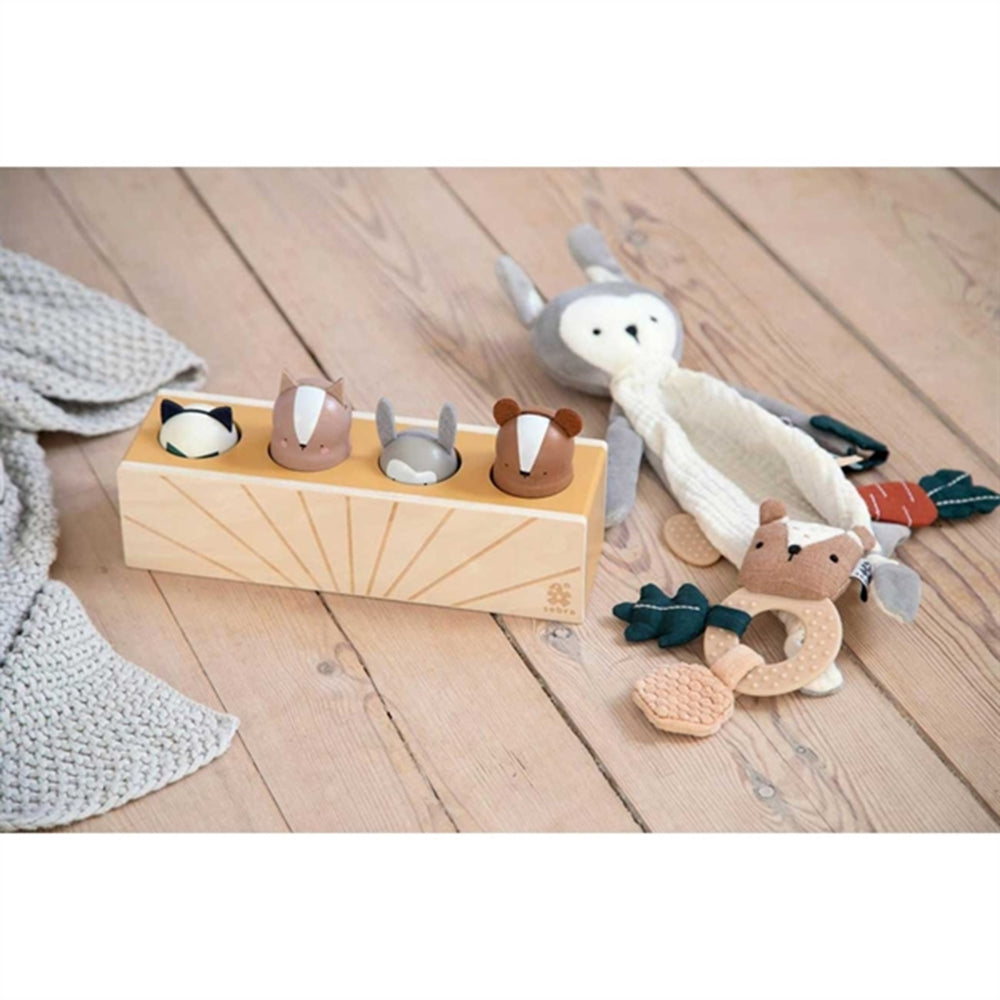 Discover the delight of Sebra Pop Up Toys Woodland, designed to captivate and educate your young ones. This charming activity toy encourages your child to enhance their hand-eye coordination uniquely and playfully. Each press on the adorable animal heads of Rebel the Raccoon, Zappy the Squirrel, Siggy the Hare, or Milo the Bear, triggers a surprise response, promoting active engagement and interaction. Perfectly safe for children aged 10 months and older, this toy is crafted from high-quality materials, guaranteeing durability for years of fun. Lightweight and easily portable, it offers hassle-free storage and maintenance, making it an excellent addition to your child’s playtime routine. Delight in watching your child’s skill development as they play, explore, and learn with the Sebra Pop Up Toys Woodland, a treasure of educational play crafted in Denmark.
