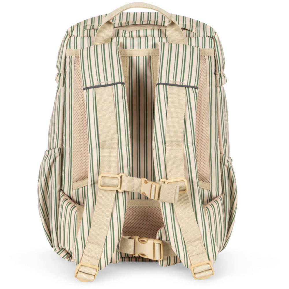Discover the Konges Sløjd Duo Verde Clover Schoolbag, perfect for your child's school day adventures. This ergonomically designed backpack ensures comfort with its adjustable shoulder straps, soft back padding, and supportive hip belt. It's crafted to ease use and includes a handy rain cover for unpredictable weather. The adjustable straps allow a customizable fit, making it an ideal choice for growing kids. Whether heading to school or exploring outdoors, this backpack blends functionality with comfort, ensuring your child is ready for every adventure.