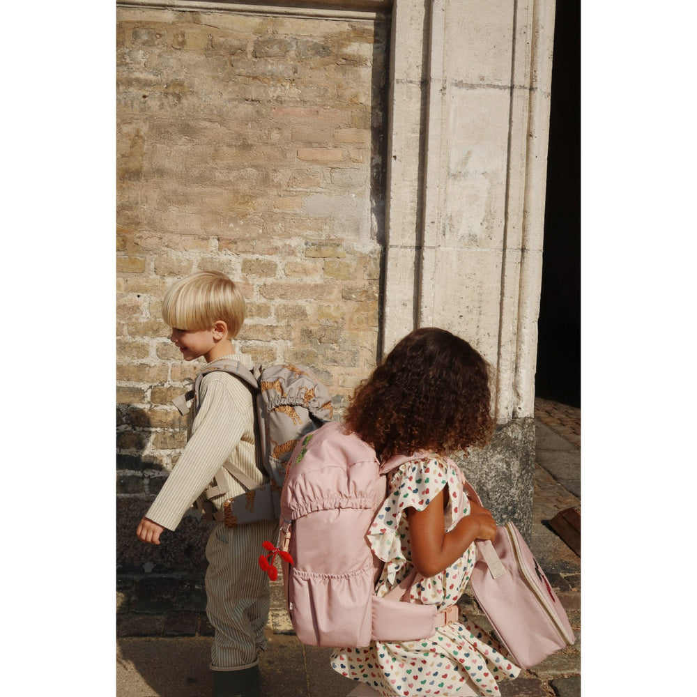 Explore the delightful Konges Sløjd Mahogany Rose Clover Schoolbag, crafted for your child's comfort and convenience. This ergonomic backpack features adjustable shoulder straps, soft back padding, and a supportive hip belt, ensuring comfort throughout the day. Its clever rain cover swiftly shields belongings during unexpected showers, making it a perfect companion for school and adventures.