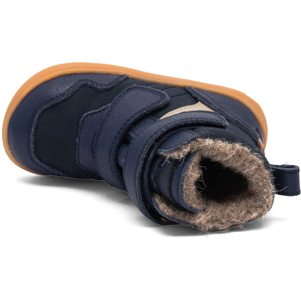 Discover the charm and practicality of the Bisgaard Navy Barefoot Timo Tex Boots, perfect for keeping your child's feet snug and stylish during the winter season. These boots are skillfully crafted from 100% LWG-certified leather, promoting responsible leather manufacturing and use of eco-friendly tanneries. The exterior boasts a soft blend of leather and textile, ensuring both superb quality and long-lasting durability.