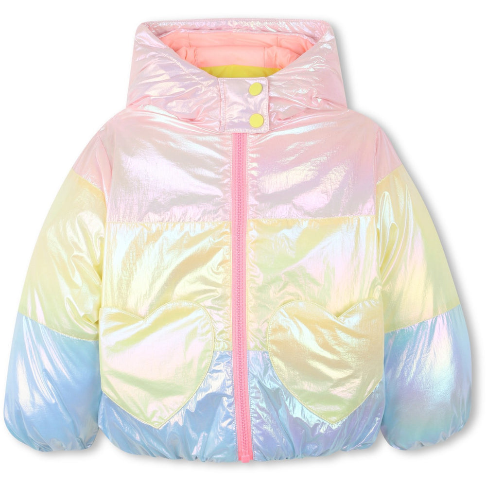 Let your little darling feel the warmth in this charming, tri-coloured Billieblush puffer jacket. Perfect for cold days with its soft down filling and practical hood. Fun sewn-on heart pockets and a shimmering zipper make it easy and fun for little fingers to wrap themselves up. A piece of outerwear that's as practical as it is adorable!
