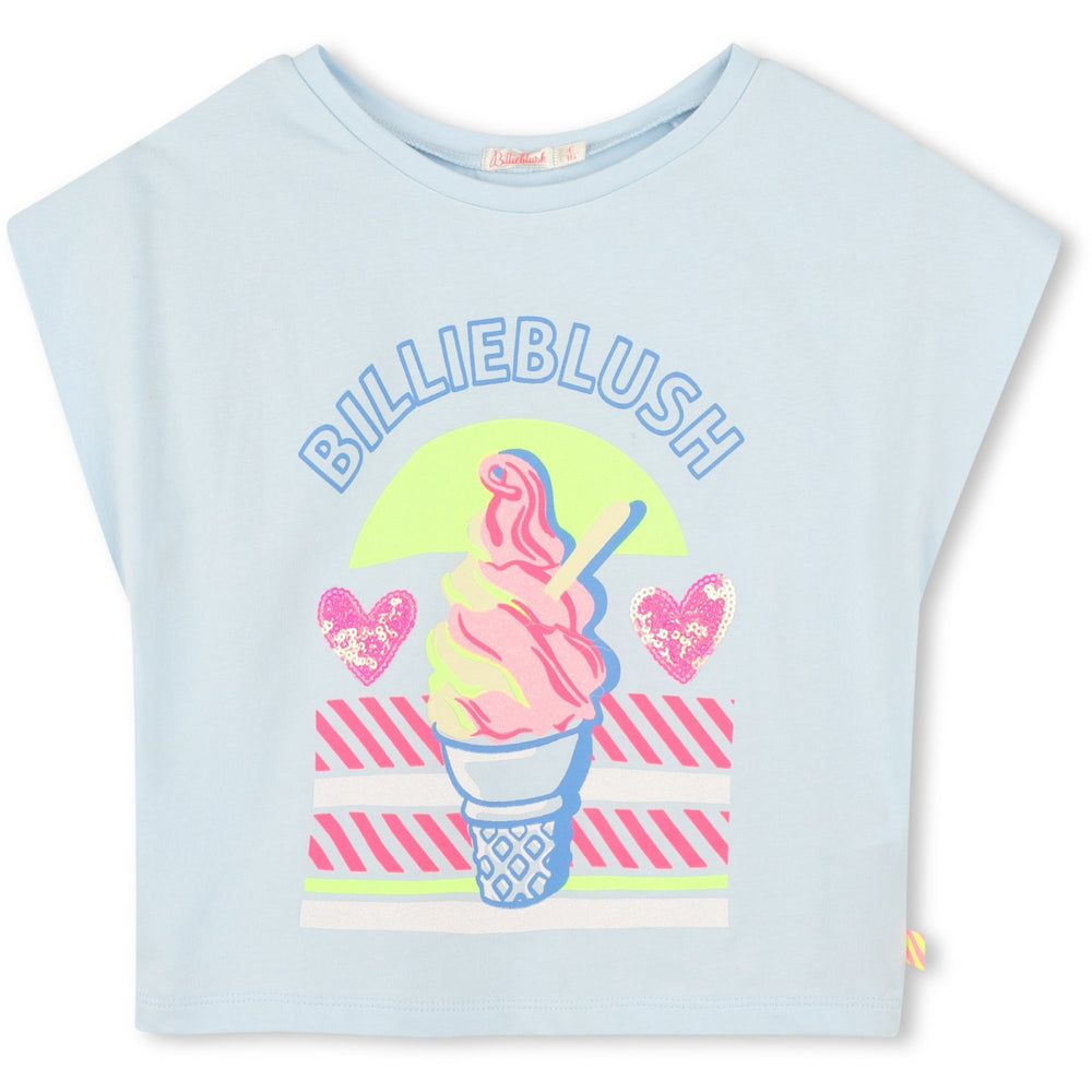 This cute Billieblush short-sleeved crew neck jersey t-shirt is perfect for a playful everyday life. On the front, a shiny illustration adorns with sparkling sequins that add a touch of magic to the child's outfit. With its loose fit, it ensures all-day comfort, no matter the adventure. Complete with a nice little label for an extra touch.