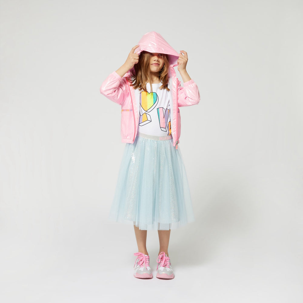 This charming pink Billieblush windbreaker is perfect for little adventurers! With its glittery exterior and soft jersey lining, it keeps your little one warm and comfortable on chilly days. The jacket has a practical hood, two spacious pockets decorated with the cute "Billieblush" ribbon and an easy-to-use zipper at the front. A must-have for autumn games and fun!