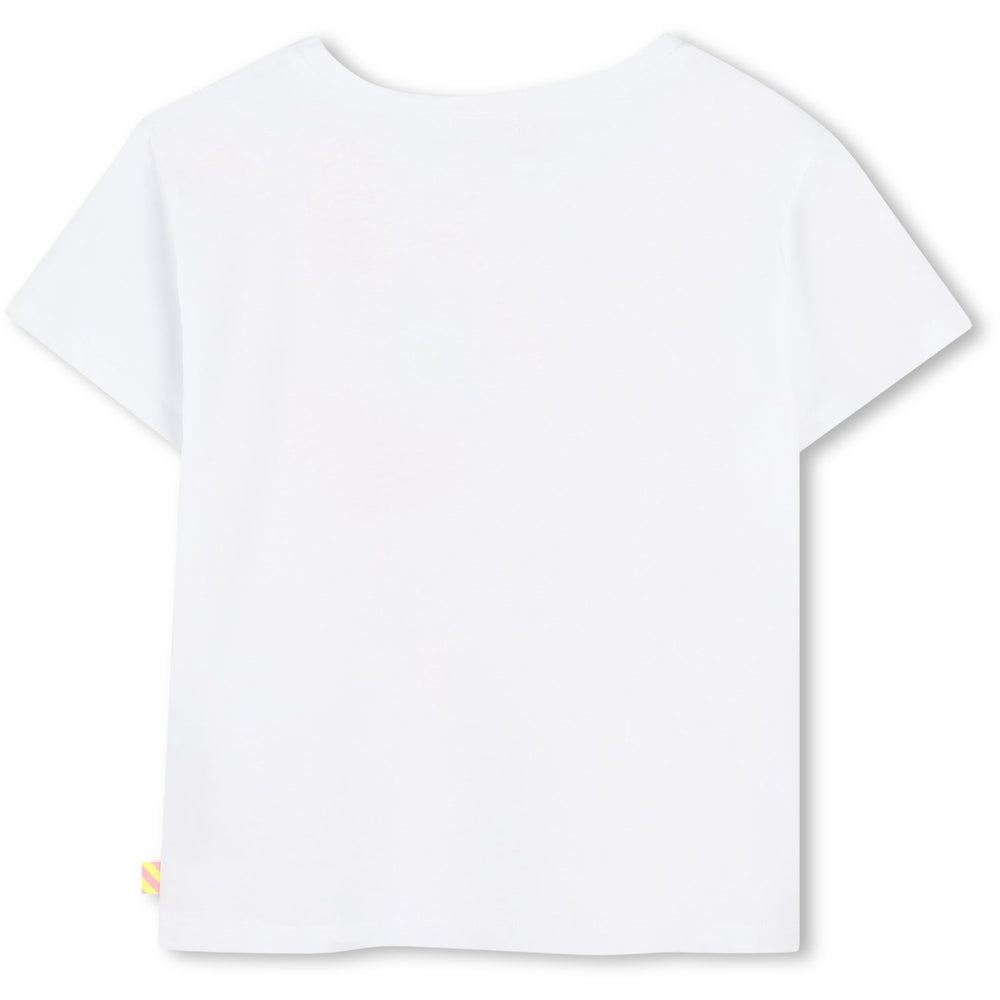 Treat your little princess to this charming Billieblush white t-shirt! Made from soft jersey fabric for optimal comfort, this gorgeous tee features short sleeves and a classic round neckline. The front is adorned with an eye-catching sequin illustration that adds a touch of glamour. Perfect for everything from playdates to family outings!