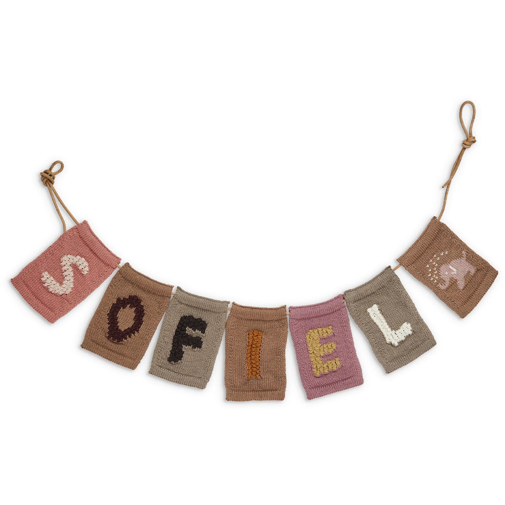 Welcome to the delightful world of the Smallstuff Rosa Flag with Elephant, perfect for adding a touch of charm to any child's space. Crafted with care, this knitted flag features a cute elephant motif in a lovely shade of pink, designed to capture the hearts of little ones. Each motif is tailored with short names to personalize easily, enhancing the decor with a personal touch when combined with your child's name.