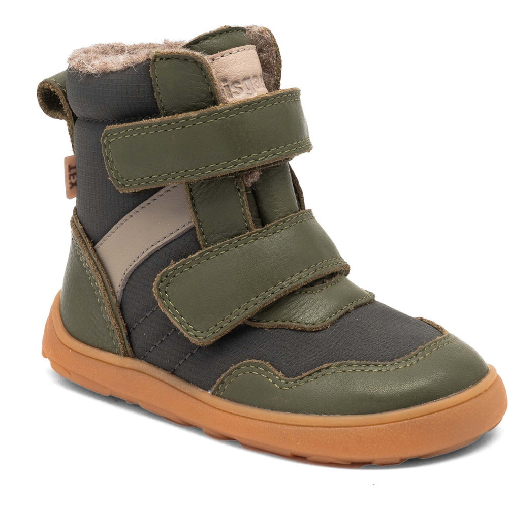 Introducing the Bisgaard Green Barefoot Timo Tex Winter Boots: these stylish, waterproof boots blend cutting-edge barefoot functionality with children's fashion sensibilities. Made from 100% LWG-certified leather, the boots champion sustainable practices and boast a premium quality, tough against winter’s harsh elements. The exterior combines soft, breathable leather with a robust textile, enhanced by a lightweight TEX membrane that expertly blocks out moisture while maintaining a comforting internal climate due to its heat and moisture-wicking properties.