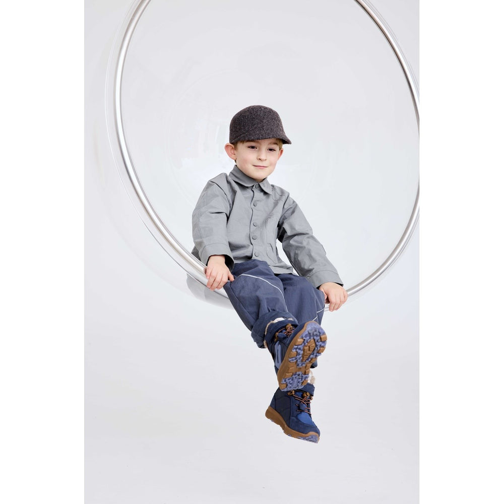 Introducing the Bisgaard Navy Marlon Tex Winter Boots, a blend of style and practicality for your child's winter adventures. Crafted from 100% LWG-certified leather, these boots not only support eco-friendly practices but also bring durability and a refined look with their textile and soft leather exterior. The sporty design comes in a versatile navy color enriched with a protective, lightweight TEX membrane that keeps little feet dry and comfortable in changing weather conditions. The interior features a warm wool lining that adjusts to varying temperatures, avoiding overheating, while the removable wool insole molds to the foot's shape for enhanced support. Moreover, an easy-to-manage elastic lace with Velcro ensures a snug fit, making these boots ideal for spirited play on forest trails and playgrounds. These shoes promise both fun and functionality in cold, wet weather. Closure: Elastic/Velcro Inner material: Wool/textile Insole material: Wool Outer material: Textile/leather Outsole material: Rubber