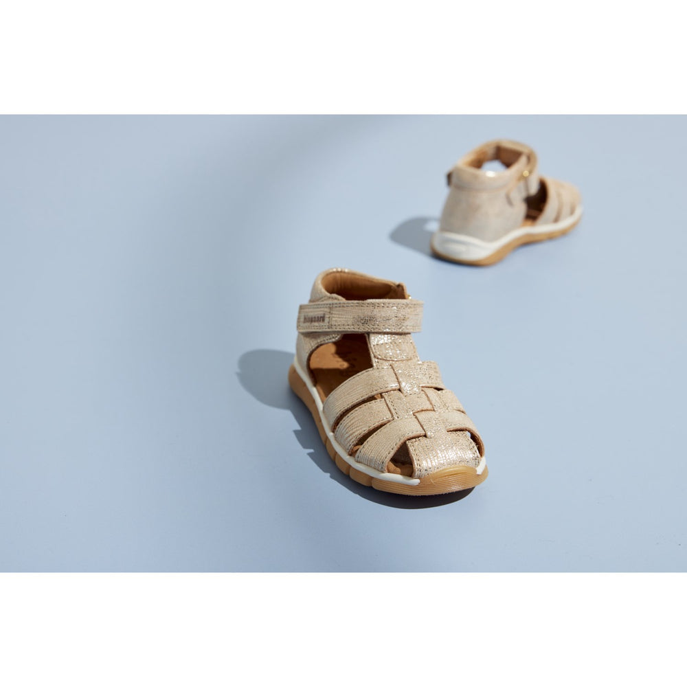 Explore the outdoors in comfort and style with the Bisgaard Platin Billie Sandal. Crafted from 100% LWG-certified leather, this sandal supports responsible leather manufacturing. Its adjustable Velcro strap ensures a snug fit, making it perfect for tiny toes. The durable and flexible rubber sole provides essential stability for all your child's adventures, while the chrome-free leather lining keeps their feet cozy all day long. The classic design and understated elegance make these sandals a versatile addition to any young wardrobe, ensuring they stay comfortable and stylish, no matter where their feet take them.