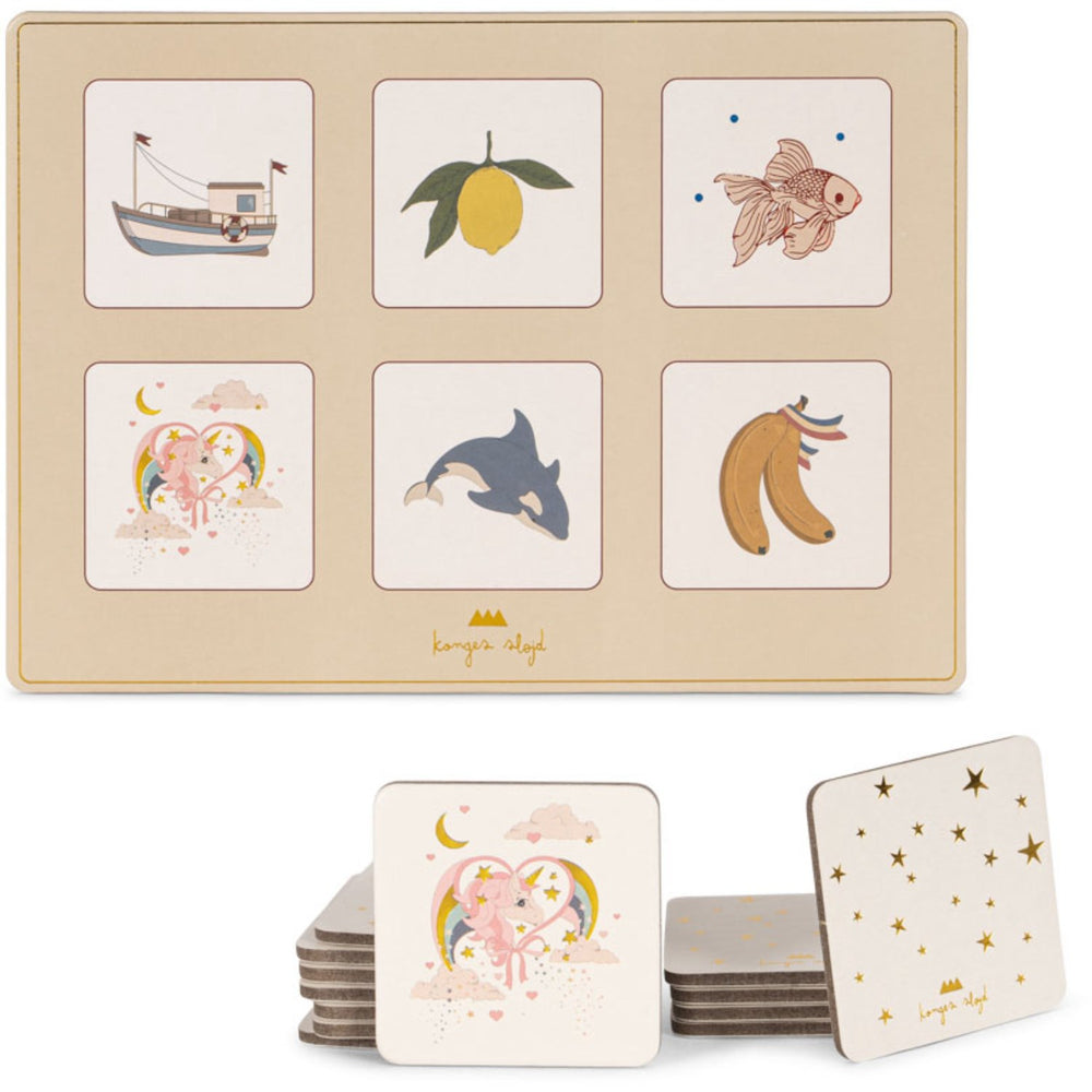 Introduce your little ones to the delight of Konges Sløjd's Creme My First Lotto FSC, a classic picture lottery game perfect for enriching family nights. Specially designed for children aged 3 and up, this game features six playing boards and 36 vibrant, hand-drawn illustrations that not only entertain but also aid in cognitive development. Its compact design ensures easy storage, while the FSC™-certified materials guarantee safety and durability. Engage, educate, and create timeless memories with this charming addition to your child's play collection. Materials: Cardboard Certifications: FSC MIX CREDIT