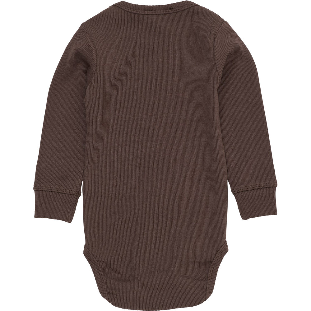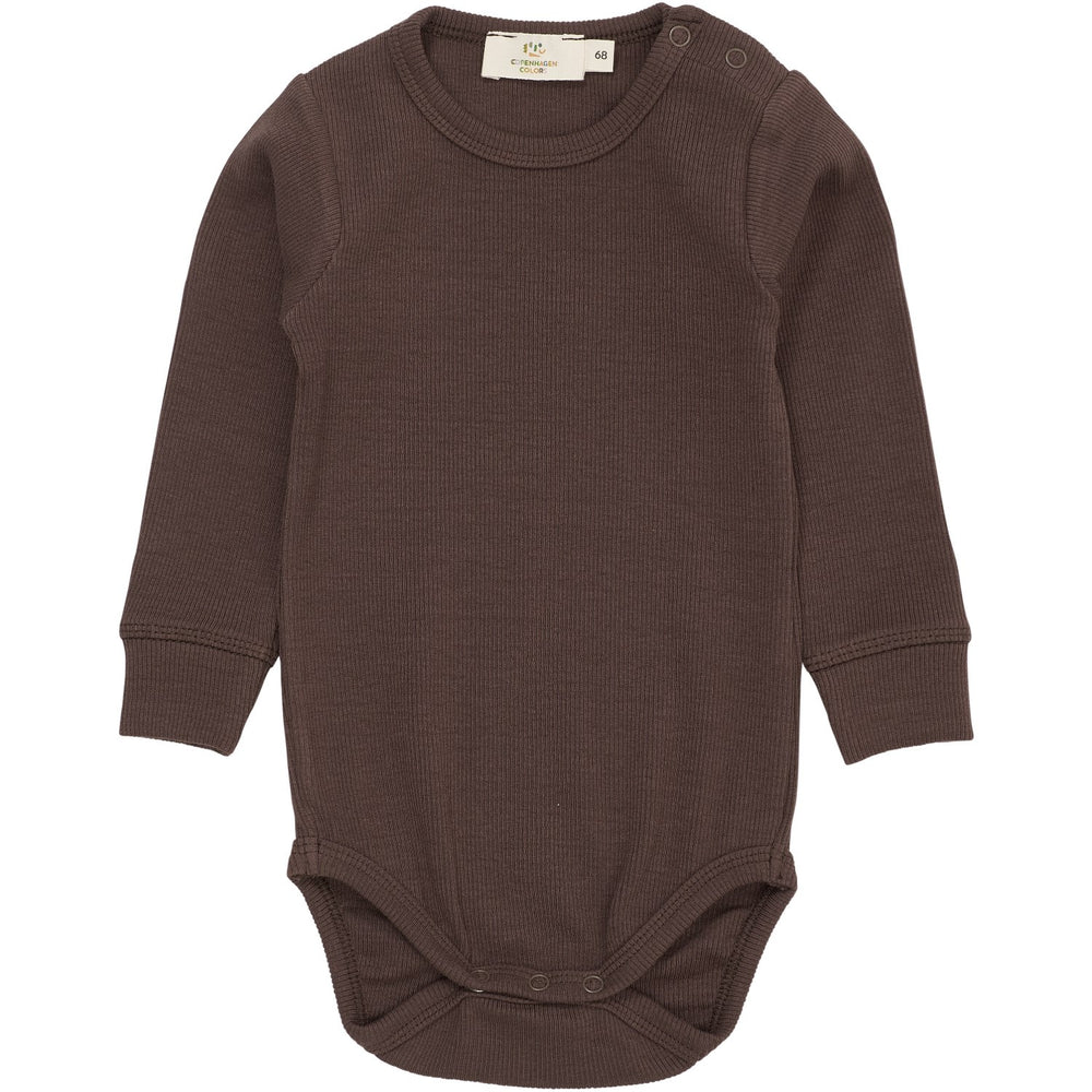 Introducing the Copenhagen Colors Bodysuit - perfect for cozy comfort and stylish simplicity. Crafted from a luxurious blend of 47% organic cotton, 47% modal, and 6% elastane, this dark brown body offers unmatched softness and stretch. Its timeless ribbed design, complete with long sleeves and a sleek round neckline, provides a snug yet flexible fit. The practical snap closures between the legs enhance ease of wear, making dressing hassle-free. Ideal for both daily wear and special occasions, it seamlessly combines function with fashion, ensuring your little one looks charming while staying comfy.