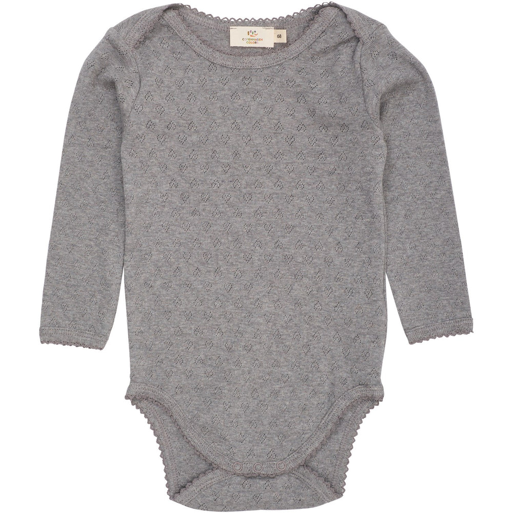 COPENHAGEN COLORS Grey Mel. Pointelle Heart Lapneck Body Ls