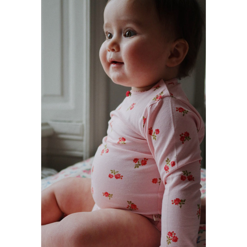 Introduce your little one to the sheer comfort and sustainable style of the Konges Sløjd Rosa Pink Basic LS Body, certified by GOTS. Lovingly crafted from 95% organic cotton and 5% elastane, this soft long-sleeved bodysuit combines durability with just the right amount of stretch for ease of movement. The delightful Rosa Pink hue and practical snap buttons at the crotch enhance both the visual appeal and functionality, making dressing and changing effortlessly simple. Ideal for sensitive skin, this bodysuit promises comfort and style in one adorable package.