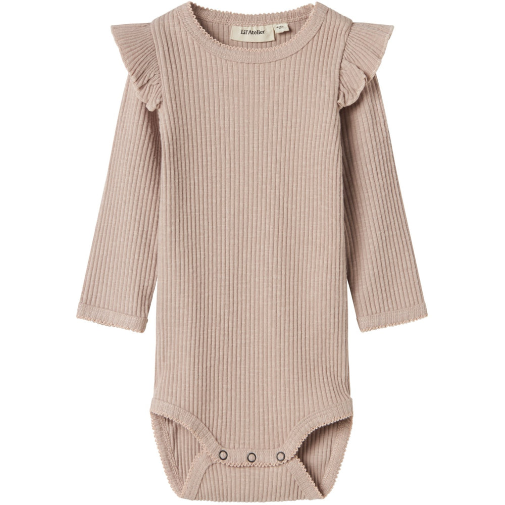 This charming piece comes in a sophisticated shadow gray color enhanced by the subtle frill details that add a touch of elegance. Practicality meets style with the dual press stud fastening at the bottom and shoulder, making dressing and diaper changes a breeze. Additionally, it includes a stylish label detail that reflects the quality and attention to detail Lil'Atelier is known for.