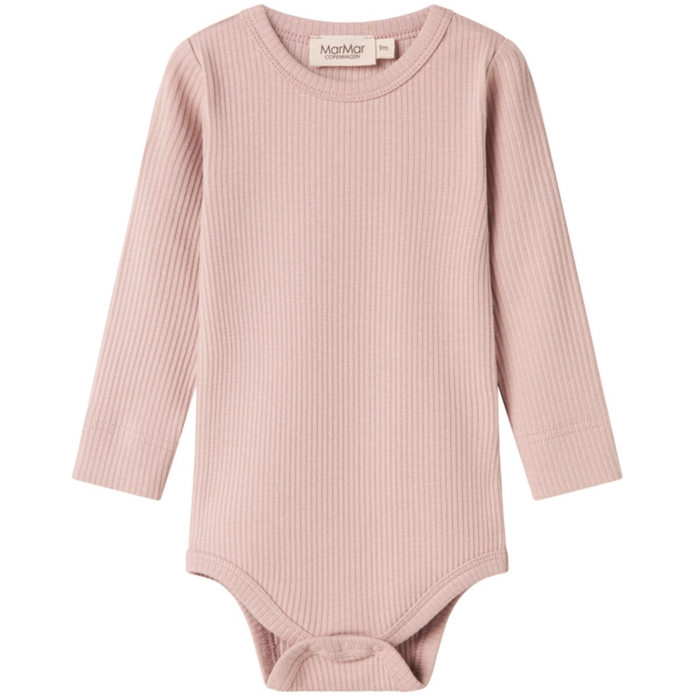 Discover the comfort and style of the MarMar Modal Faded Rose Plain Body LS, perfect for your little one. This cozy long-sleeved bodysuit features a soothing faded rose color and is crafted from soft, breathable modal fabric. With convenient snap buttons at the crotch, changes are quick and hassle-free. Ideal for both playtime and naptime, it combines durability with a gentle touch against sensitive skin. Materials: 47% Modal 48% Cotton (Organic) 5% Elastane Washing instructions: Wash - Machine wash 40°C , Bleach - Do not bleach , Drying - Do not tumble dry, Ironing - medium, Dry Clean - Dry clean possible Certifications: OEKOTEX standard 100, GOTS , Lenzing, SMETA Rib knitted with elastane Soft, stretchy and comfortable to wear Quality that keeps shape and color Wear it with everything Oeko-tex® - Tested for harmful chemicals Modal styles is a favorit since 2008 and is lanched in new colors each season