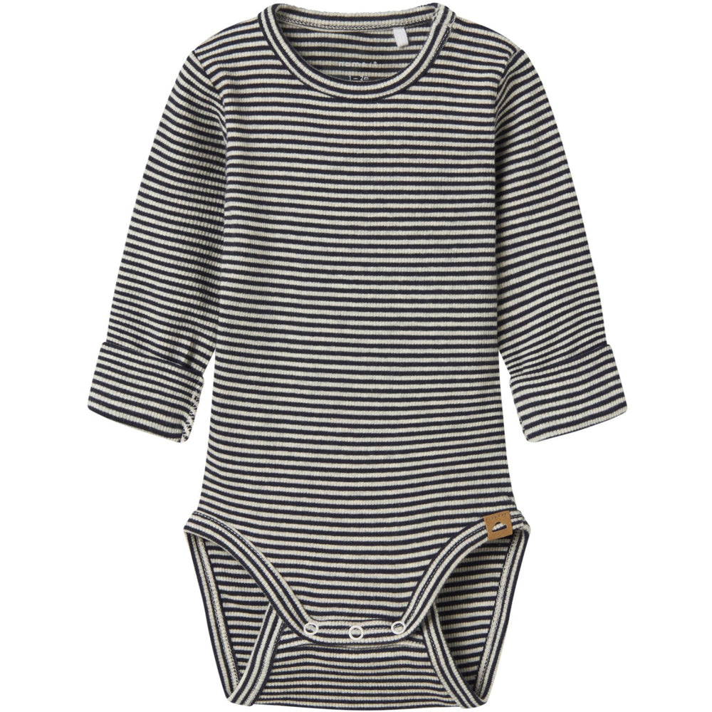 Introducing the Name It Navy Blazer Nbnberro R Ls Body, a charming bodysuit that combines fashion and function for your little one. Crafted with soft, skin-friendly fabric and featuring a classic round neck and long sleeves with fold-up cuffs, this piece ensures comfort throughout the day. The sleek navy color accented with tasteful button details complements any child’s wardrobe. Equipped with convenient press stud fastening for easy dressing and changes, this bodysuit is both stylish and practical. Remember, keep this adorable garment away from fire for safety. Perfect for everyday wear, it promises to keep your child looking trendy and feeling comfortable.