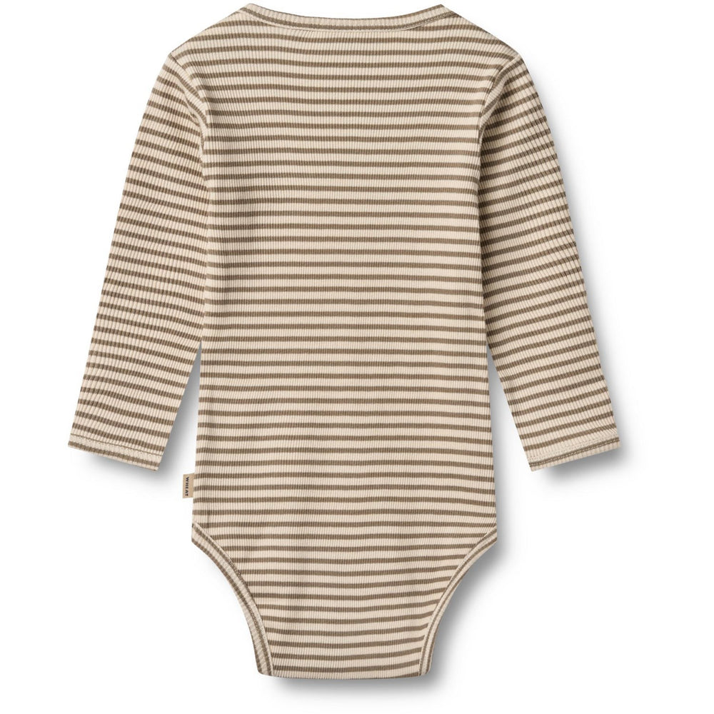 Introduce your baby to the delightful comfort of Wheat Stone's Stripe Body L/S Berti, meticulously crafted from 100% organic cotton which is both GOTS certified and Standard 100 by OEKO-TEX® approved. This charming long-sleeved bodysuit features a stylish striped design with a cozy ribbed structure, ensuring your little one stays snug and fashionable. Impressively versatile in its Wheat color palette, it can beautifully complement various infant attire options. Designed for ease of use, it includes practical press buttons at the shoulder and crotch for effortless dressing and quick diaper changes. The unisex fit makes it an ideal addition to any baby's wardrobe, perfect for wearing alone or layering under other clothes for extra warmth. Ideal for every day, this bodysuit combines effortless style with essential functionality, making it a superb choice for your child's comfort and your peace of mind.