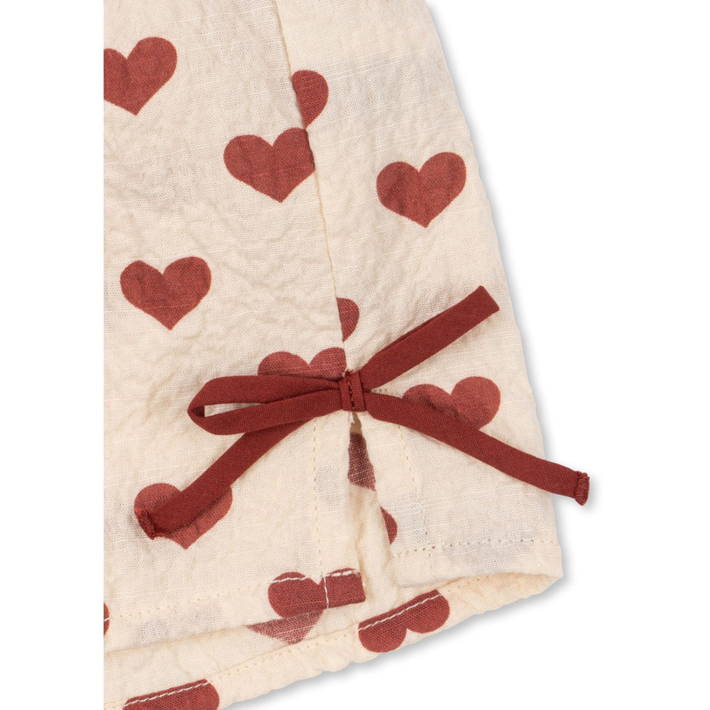 Discover the charming comfort of the Konges Sløjd Amour Rouge Ava Slit Shorts, expertly designed for playful days. Crafted from 98% organic cotton and 2% elastane, these shorts boast a soft, seersucker texture that allows for breathability and movement. Featuring a tasteful slit on each leg side, they combine style with ease of wear. Fully GOTS certified, these shorts promise a sustainable and gentle fit for your child, ensuring they stay comfortable and stylish in any activity. Perfect for outings or simply enjoying a sunny day, these shorts are a versatile and conscious addition to any child's wardrobe.