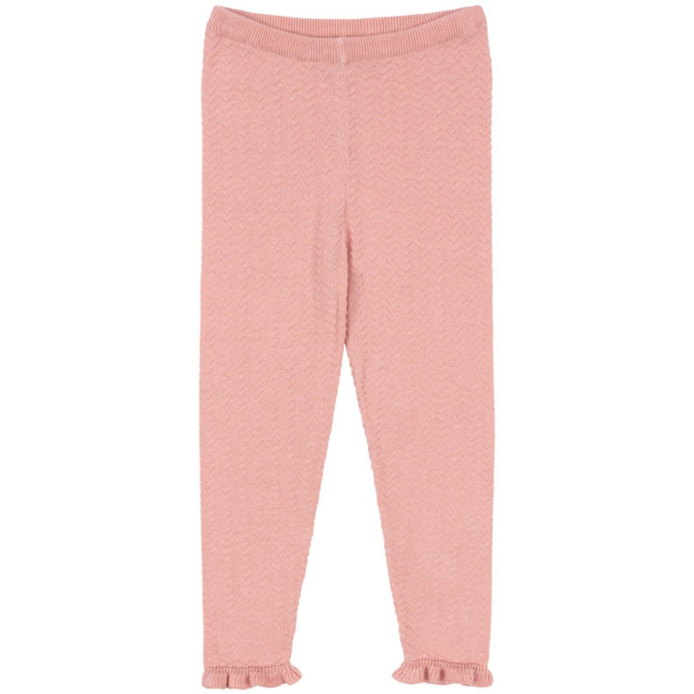 Discover the charm of our Konges Sløjd Mellow Rose Cypres Pants, where style meets eco-conscious crafting. Designed with delightful frills along the hems, these knitted pants are made from 100% organic cotton, certified by GOTS under CU1094701. Not only do they promise a snug and comfortable fit, but their durable design ensures enduring wear and easy care, perfect for lively little ones. Ideal for both cozy days in and adventurous outings, these pants offer versatility and a splash of elegance with their soft rose hue and unique pattern.