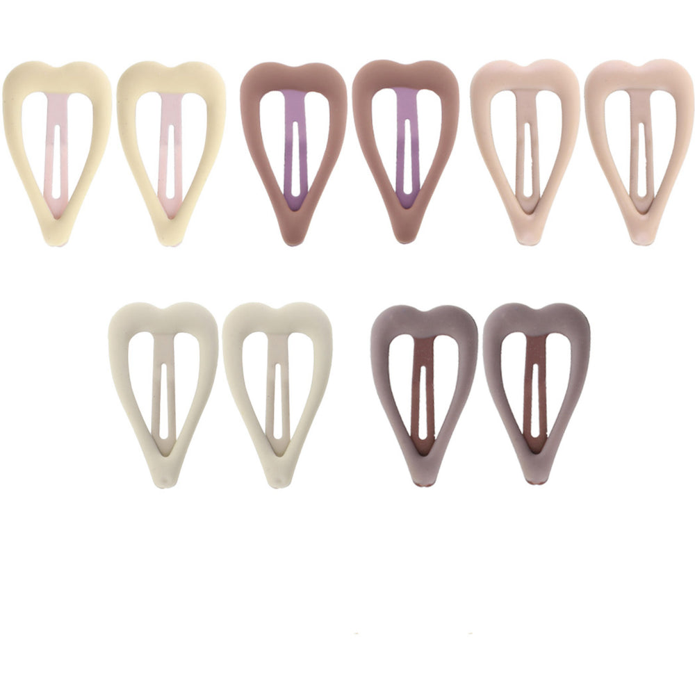 Upgrade your little princess wardrobe with this charming pack from Bow's by Starling!Each of the 10 brown snap hair clips is shaped like a sweet heart, perfect for adding a touch of love and style to any hairstyle. They are easy to use and keep hair securely in place throughout the day. Ideal for school, play dates or a special family outing. Materials: Metal Measurements: 3 x 1.5 cm Washing instructions: Remember to follow the washing and use instructions