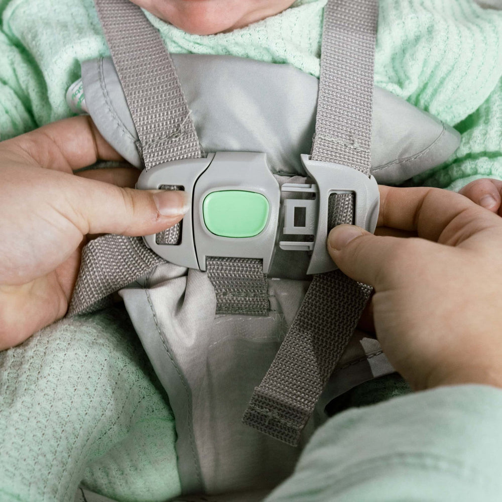 - Washing instructions: Seat pad – Remove from frame. Fasten buckles on seat restraint and seat pad. Fasten all hook-and-loop patches to the corresponding patch. Machine wash with cold water, gentle cycle. No bleach. Tumble dry, low heat. Headrest – Fasten all hook-and-loop patches. Machine wash with cold water, gentle cycle. No bleach. Air dry flat. Toy bar and toy – Wipe clean with a damp cloth and mild soap. Air dry. Do not immerse in water. Frame – Wipe the metal frame with soft, clean cloth and mild soap. Storage – When putting swing away for storage, always store in a dry location, away from any heat sources, and out of the sun.