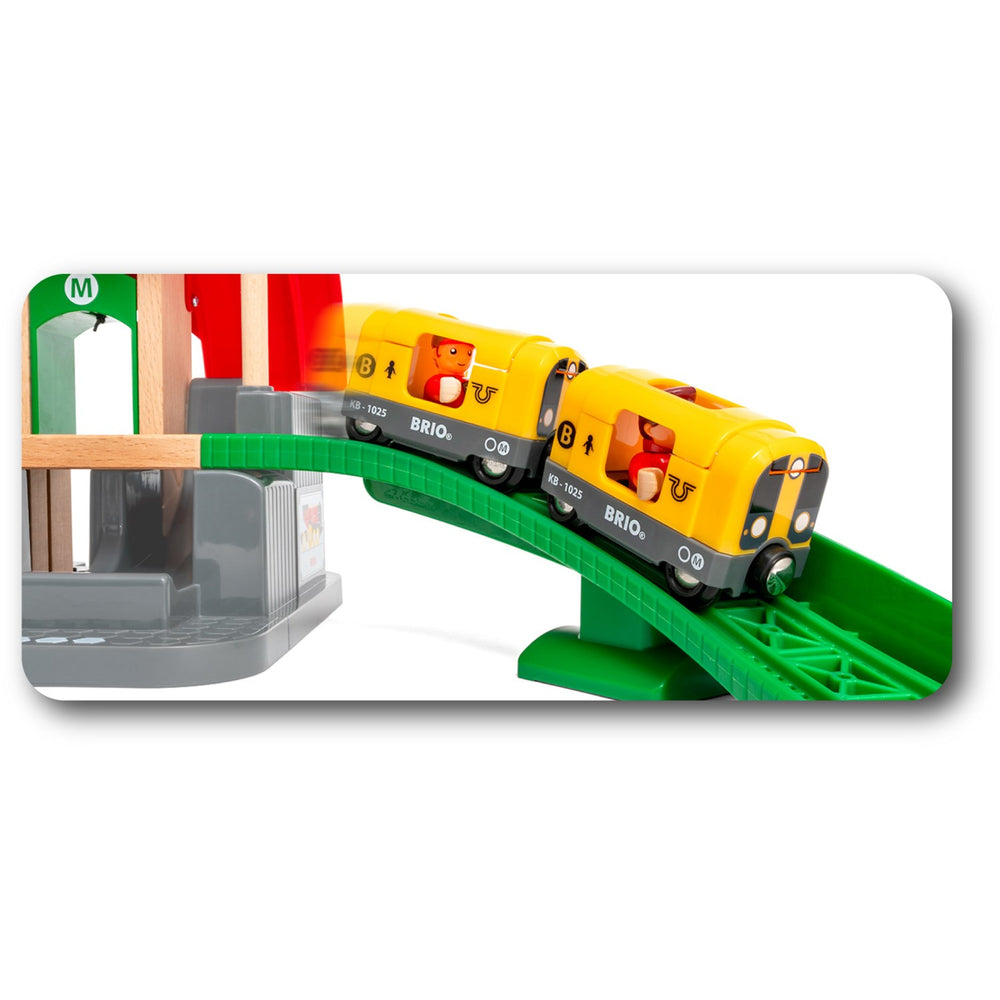 Embark on a fantastic railway adventure with the BRIO® 33989 Central Station Set. This toy set ignites imaginations with a bustling main train station, where children can simulate moving between modes of transport using an innovative elevator and stairs system. Engage your little conductor with a delightful red passenger train and a vibrant yellow subway, navigating through expertly crafted wooden tracks. The set includes a variety of accessories like a stop signal and a train crossing with an actual signal, enhancing playtime with realistic scenarios.