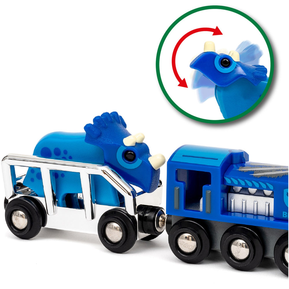Spark your child's imagination with the exclusive 36111 Special Edition train (2025) from BRIO®. This stunning dinosaur-themed train enhances play with a striking silver and blue design and a unique Triceratops figure. Dive into interactive fun as you explore the engine's inner workings by opening the bonnet, and then load up the friendly dinosaur for endless adventures. Perfectly sized for little hands and designed with safety in mind, this toy encourages both imaginative play and develops motor skills. Easy to use and store, this limited edition train is an engaging, safe, and educational addition to any young conductor's BRIO World railway collection. Available only in 2025, don't miss this opportunity to enrich your child's playtime with a touch of prehistoric sparkle!