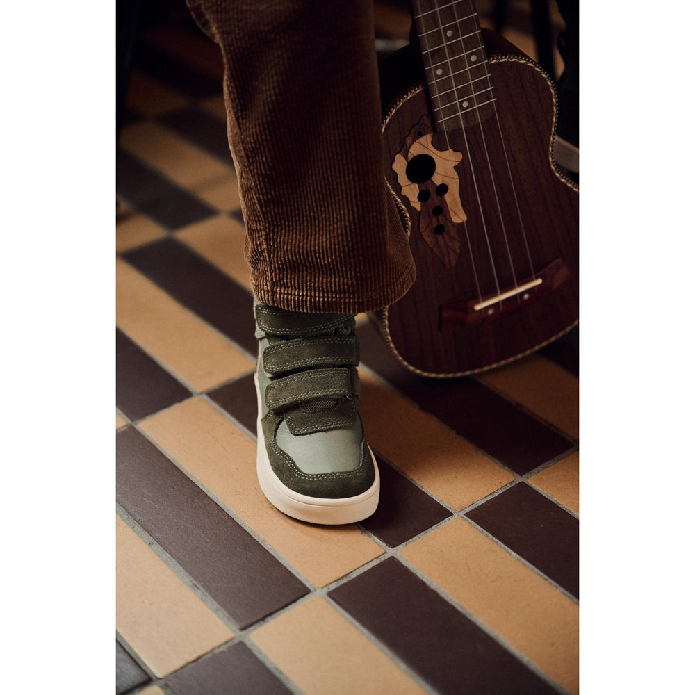Discover the charm of the Bundgaard Army Nero, a sleek high-top sneaker designed for the playful spirit of young adventurers. Crafted with utmost care from ultra-soft suede and premium leather, this shoe features elegant suede accents that weave a touch of sophistication into its daringly raw aesthetic. The practical Velcro closure ensures easy wearing and a snug fit, perfect for kids always on the move. Its flat sole promotes a natural foot position, aiding in the healthy development and muscle strengthening of growing feet. Ideal for every escapade, Nero blends comfort, style, and function seamlessly, making it a top choice for both parents and children alike. Perfect for those seeking a stylish, supportive, and easy-to-maintain option in children's footwear.