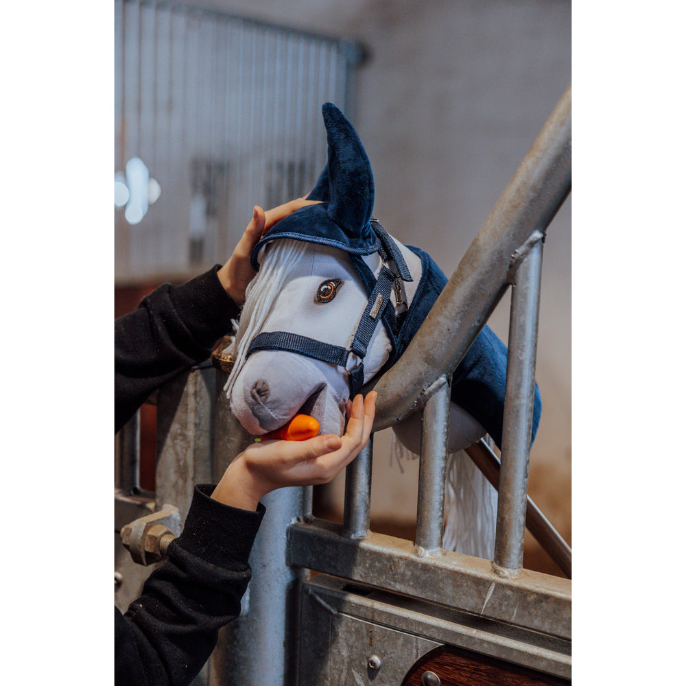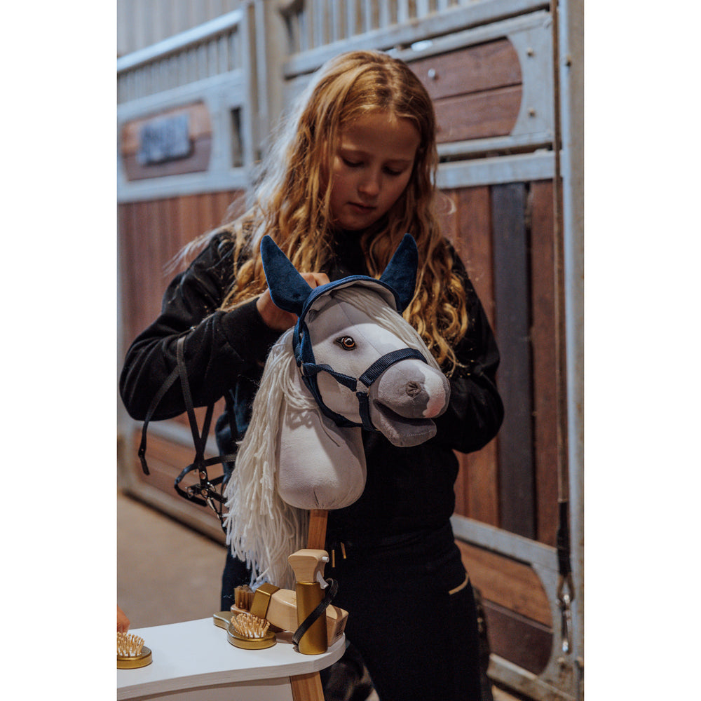 Give your child's hobby horse a stylish and comfortable makeover with the byAstrup Dækken Og Hut in a classy navy blue. This charming set, including a snug blanket and hat, is designed with soft velour fabric that ensures a luxuriously cozy fit, enhancing both comfort and style. Perfect for indoor and outdoor play, this set is crafted for ease of use with an adjustable strap and buckle for a secure fit, and a Velcro closure on the hat for quick changes. Engage your little one's imagination and enhance their play experience with this set that not only looks great but also aids in developing their sense of care and creativity. Ideal for children who love to keep their play friends dressed and ready for any adventure, whether in a field, stable, or hobby horse box.