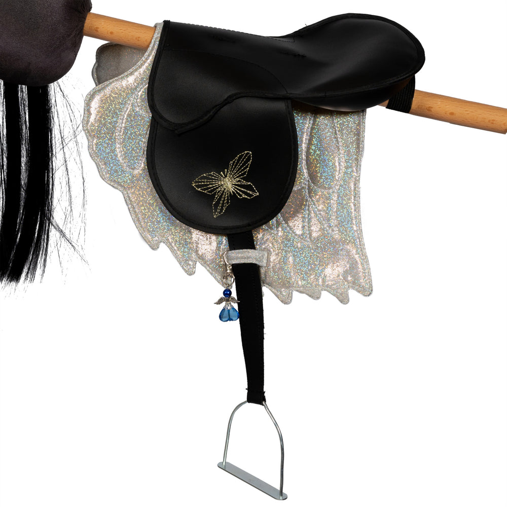 - The set includes a glittering saddle pad, a matching headband and a nice charm that can be attached anywhere on either hobbyhorse or rider