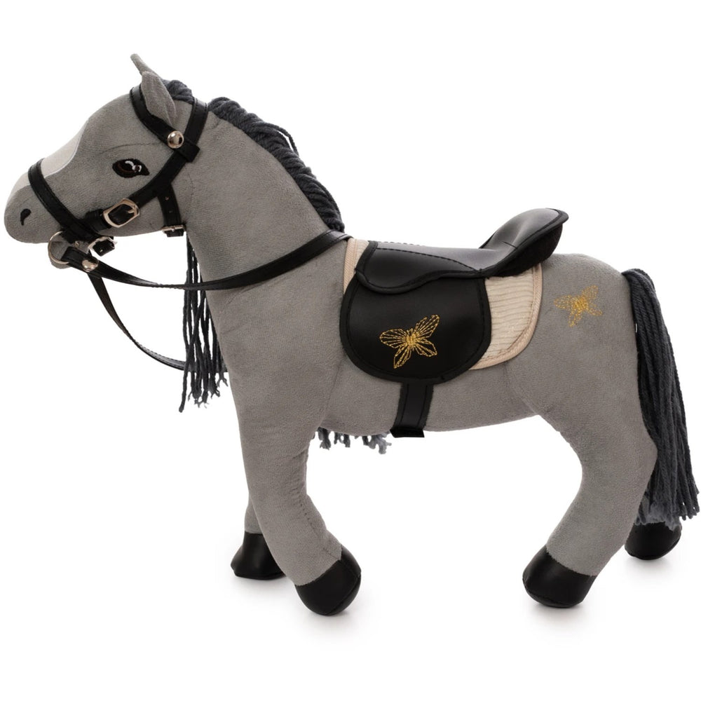 Give your child's hobby horse a stylish upgrade with the byASTRUP® Riding Equipment Set, perfectly tailored for 30 cm horse models like Lucky, Pixie, and Daisy. This exquisite set includes a saddle, bridle, and a cream-colored waffle saddle pad, all crafted from durable PU material to ensure long-lasting use. The elegant byASTRUP® gold butterfly embroidery on each side of the saddle adds a unique touch of sophistication. Not only does this set enhance your horse's appearance, but it also provides additional comfort during play. Ideal for fostering imaginative play, this set helps develop coordination and encourages creativity in children, making it a perfect addition to their playtime routine. Easy to use and maintain, it's designed for both fun and functionality, ensuring your little equestrian can enjoy endless adventures.