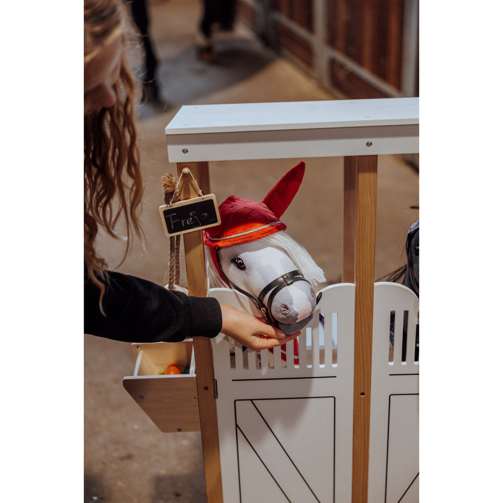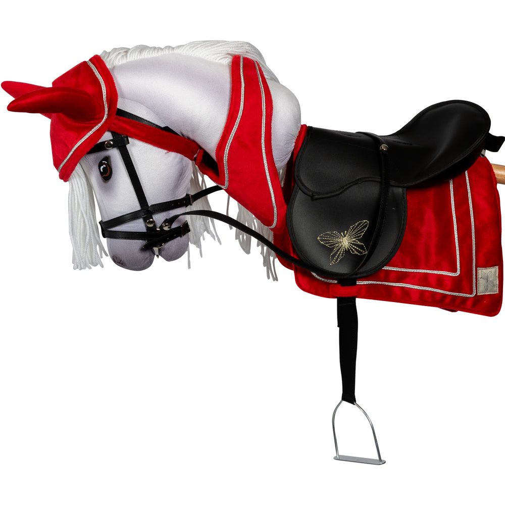 - The set includes three popular elements: a red velvet saddle pad, a matching hat and a decorative scarf that can be elegantly draped around the hobby horse's neck and complete its show-ready look